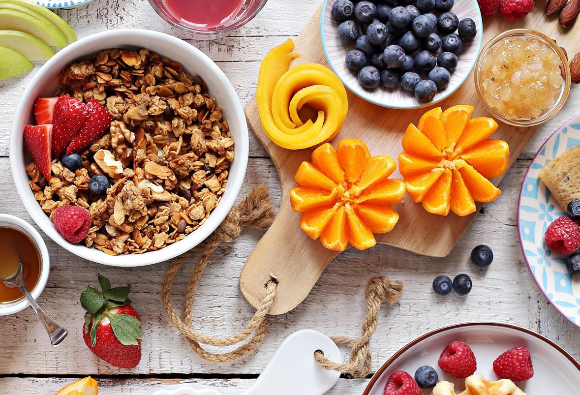 Omelet Station, Pancake & Waffle Bar, Honey Glazed Ham, Fluffy Scrambled Eggs, Crispy Bacon, Pork Sausage, Home Fried Potatoes, Cheesy Shrimp & Grits, Biscuits with Country Gravy, Miniature Chicken & Waffles with Honey, Ricotta Cheese Crepes with Fresh Strawberries, French Toast, Fresh Fruit Salad, Muffins, Danishes, Sweet Bread & Greek Yogurt Bar, Bagels, Baguettes, Meat & Cheese Charcuterie Board, Mother’s Day Cake & Candy Bar