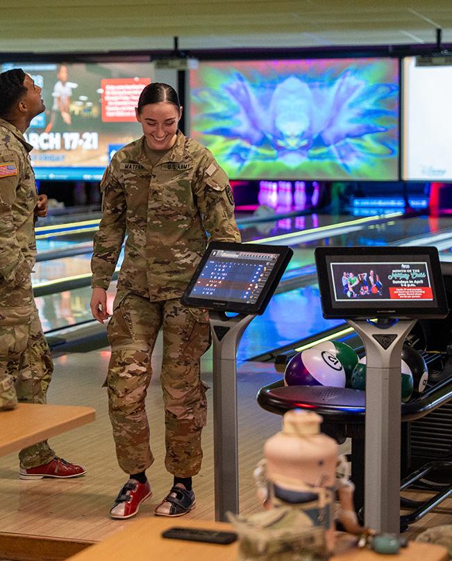 Single active-duty military members can bowl two games with rental shoes included for only $10 per person.