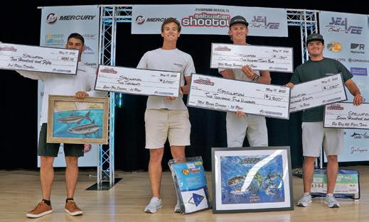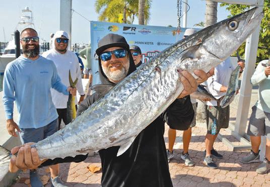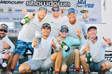 to add another species to the bag. We’ve always done well with wahoo in the Showdown ( we won the Crown in 2020 with an a ernoon Wahoo ), so Ryan fired out one of our last big baits. As Alex nudged out a li le deeper, Ryan had the right fish pile on his bait. A few minutes later, Mike Benson and Alex stuck a 48 lb. Wahoo and sealed the deal for the Showdown Crown! We were confident that we secured the rings with that wahoo, but once we realized that we had also won the Showdown with our 135.8 lbs. bag, we knew we accomplished something special. Our 2nd, 1st and 1st place finishes gave us 91 points for the series… a new Showdown Crown record.