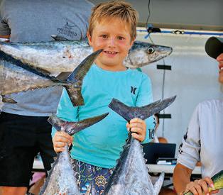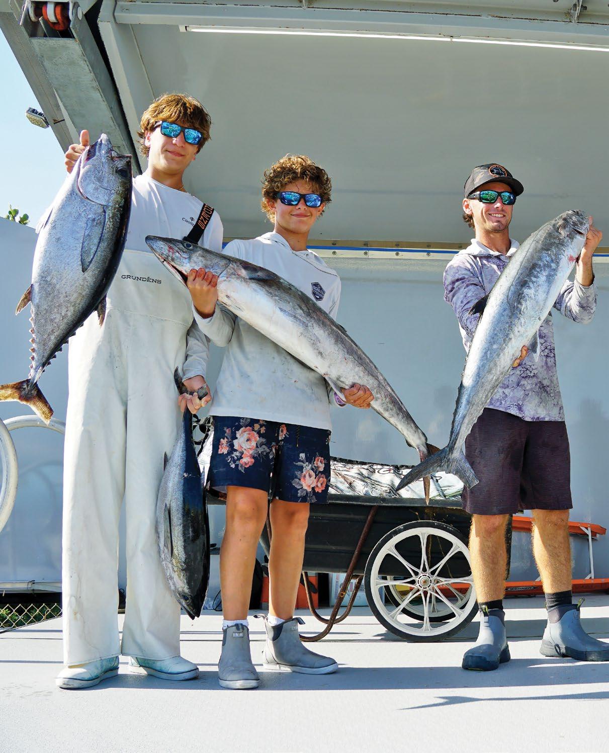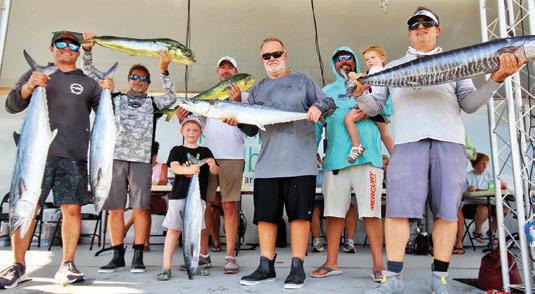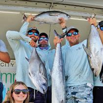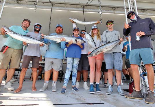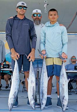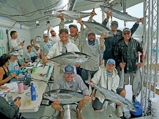 help get the boat tied off properly until help arrived with crash pumps. There are always obstacles to overcome in tournament fishing, and you have to be ready for curveballs. Once we dropped Alex off, we headed north to find some fish. A er fishing Thursday and Friday, we had a good idea where we’d start on Saturday. Typical for August, it was a grind on the ledge to find quality kingfish and we picked at smaller fish throughout the day. But, we kept working and found a few decent fish later in the a ernoon around 1:30. We heard that Mac Daddy had a few tunas, along with their kings, so we knew we needed