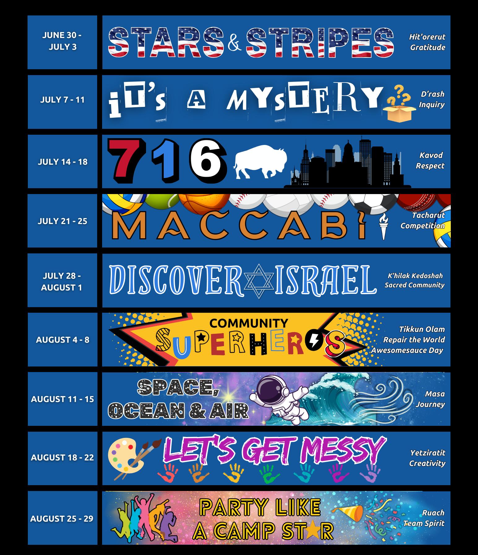 At camp, our mission is simple: to inspire and empower each camper to embrace their unique potential within a supportive community. We foster an inclusive environment that celebrates diversity, meaningful connections and shared experiences. This summer, we’ve planned a lineup of activities and adventures designed to excite, inspire, and challenge your campers in all the best ways.