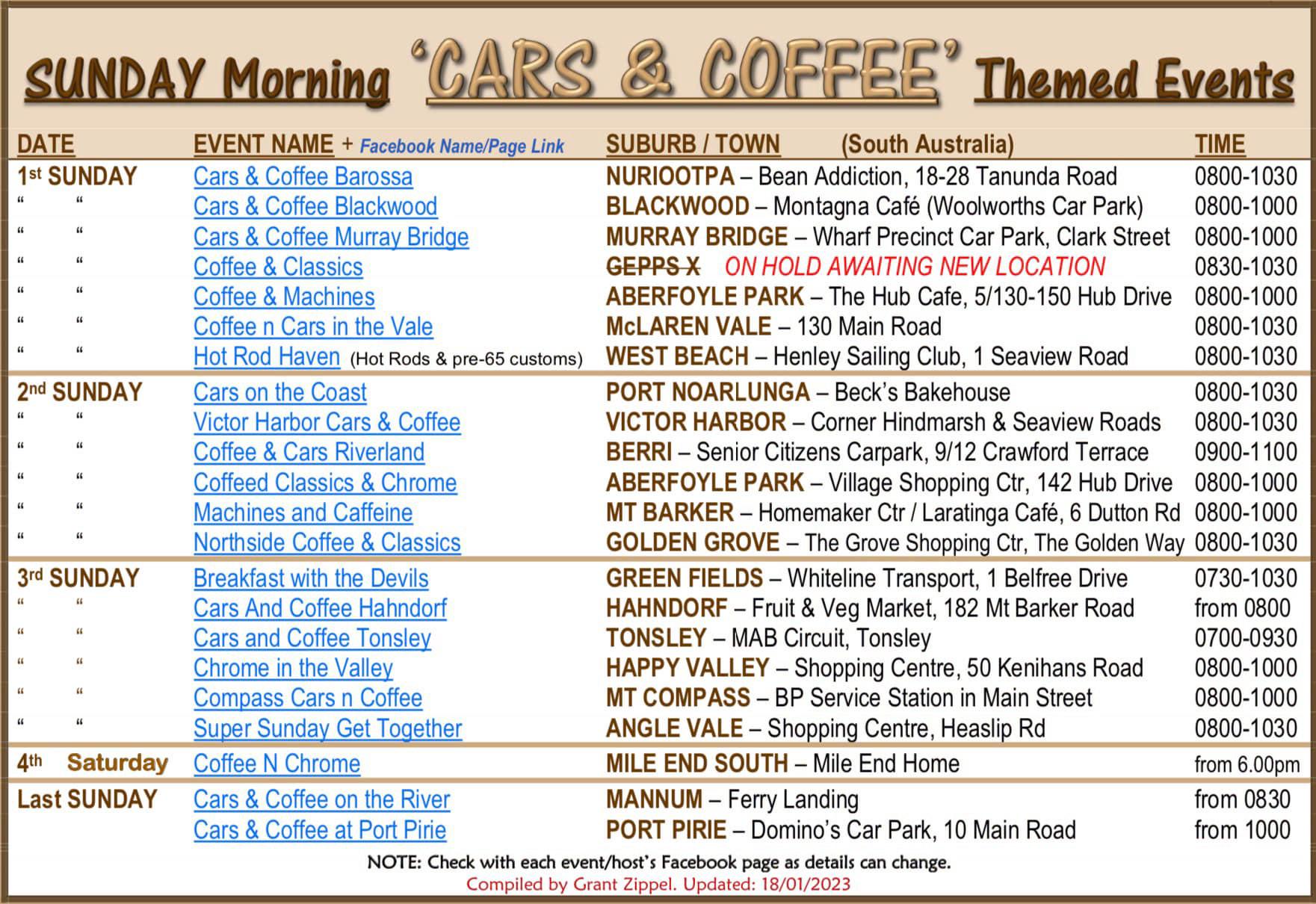 Coffee n Chrome: Colman Tce, Strathalbyn: 8.30am to 11.30 am