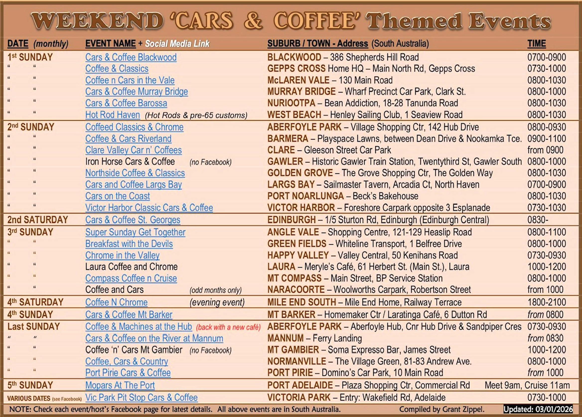 Barry Kitts said a new format for the 15th March event at Mallala will include the Coffee and Cars.