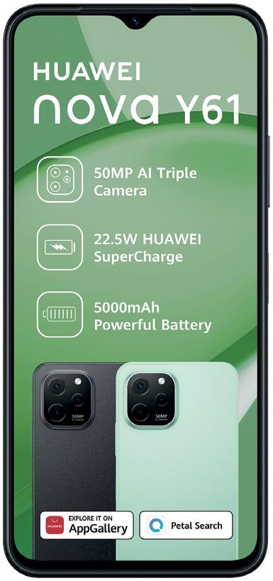 04 | www.Incredible.co.za. Terms & conditions apply. For full terms and conditions, please refer to page 12 3499 Redmi 10C 64GB Smartphone • 6,71 inch HD+Dot Drop Display • AI Triple Camera 50MP Primary Camera • 5MP Selfie Camera • 5000mAh High Capacity Battery • Snapdragon 680 Processor • 4GB RAM + 64GB Storage • 18W Fast Charging • 1 Year Warranty • (10282891/10282366/10282393) 1999 Redmi A1 • 6.52 inch Display HD+Dot Drop Display • AI 8MP Dual Camera • 32GB Storage with 2GB RAM • 5000mAh Battery • Dual Sim + Dedicated MicroSD Slot • MediaTek Heilo A22 Quad-Core Processor • 1 Year Warranty • (10286607/10286613) Nova Y70 Smartphone • 6.75” Full View Display • 48MP + 5MP + 2MP + 8MP • RAM 4GB + ROM 64GB • 6000mAh Battery • MicroSD Card, up to 512 GB (not inbox) • EMUI 12 • 1 Year Warranty • (10282846/10282833) 309 PMx24 on a FlexOn2 Price Plan Includes 20GB x1 Month R99 Once-Off Activation Fee CONTRACT ON 3999 Redmi 10 Smartphone • 6,5 inch FHD+DotDisplay • 50mp AI quad rear camera • 8mp Front camera • 5000mAh Battery • USB Type-C • 18W Fast charger • 1 Year warranty • (10282170) 3999 SAVE 300 3299 Nova Y61 Smartphone • 6.5 inch Display • Camera: 50MP+2MP+2MP • 64GB Storage and 4GB RAM • 5000mAh Battery • EMUI 12 • Standard USB Type-C • 2 Year warranty • (10286870/10286943) 229 PMx24 on a FlexOn2 Price Plan Includes 20GB x1 Month R99 Once-Off Activation Fee CONTRACT ON Nova Y90 Smartphone • 6.70 inches Edgeless Full View Display • Camera: 50MP+2MP+2MP • 50MP AI Triple Camera • 128GB Storage and 6GB Ram • EMUI 12 • 5000mAh Battery • 1 Year Warranty • (10285362/10285440) 5499 SAVE 300 329 PMx24 on a FlexOn2 Price Plan Includes 20GB x1 Month R99 Once-Off Activation Fee CONTRACT ON Phones on contract Get 20GB Data Once Off When You Buy This Phone on Prepaid *T’s & C’s Apply DUAL SIM Get 20GB Data Once Off When You Buy This Phone on Prepaid *T’s & C’s Apply DUAL SIM Get 20GB Data Once Off When You Buy This Phone on Prepaid *T’s & C’s Apply DUAL SIM Get 20GB Data Once Off When You Buy This Phone on Prepaid *T’s & C’s Apply DUAL SIM Get 20GB Data Once Off When You Buy This Phone on Prepaid *T’s & C’s Apply DUAL SIM Get 20GB Data Once Off When You Buy This Phone on Prepaid *T’s & C’s Apply DUAL SIM