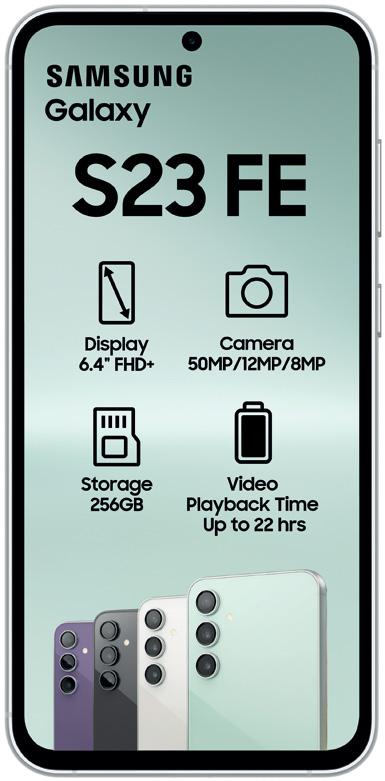 CONTRACT ON 679 PMx36 on a Red 1.3GB | 100 MIN Contract Plus You Get 30GB Data once Off R204 Once-off Sim & Connection 13999 CONTRACT ON 749 PMx36 on a Red 1.3GB | 100 MIN Contract Plus You Get 30GB Data once Off R204 Once-off Sim & Connection 16999 CONTRACT ON 949 PMx36 on a RED 1.3GB | 100min Contract Plus You Get 30GB Data once Off R204 Once-off Sim & Connection 22999 www.incredible.co.za. Terms & conditions apply. For full terms and conditions, please refer to page 20. | 03 Galaxy S23 Ultra 256GB • Screen 6.8-inch QHD+ • Camera Front 12MP • Camera Rear 200MP+10MP+10MP+12MP • 256GB Storage and 12GB RAM • 2-Year warranty • 10288743 / 10288701 Galaxy S23 256GB • Screen 6.1-inch FHD+ • Camera Front 12MP • Camera Rear 50MP+10MP+12MP • 256GB Storage and 8GB RAM • 2-Year warranty • 10288712 / 10288642 / 10288733 Galaxy S23 FE • 6.4-inch screen dynamic AMOLED 2x • Camera rear 50MP + 12MP + 2MP • Camera front 10MP • 256GB storage and 8GB RAM • 2-Year warranty • 10293572 DUAL SIM DUAL SIM DUAL SIM CONTRACT ON 929 PMx36 on a Red 1.3GB | 100 MIN Contract Plus You Get 30GB Data once Off R204 Once-off Sim & Connection 20999