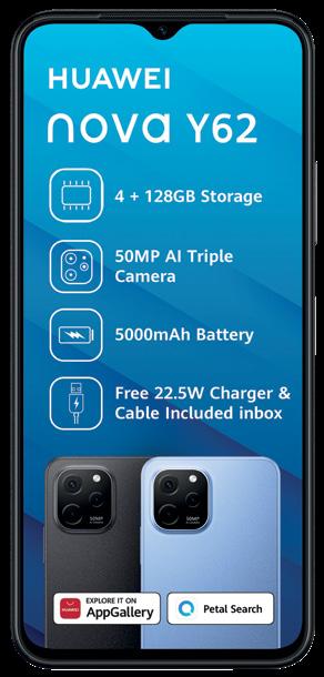 Screen 6.52-inch HD+ LCD • Camera rear 50MP+2MP+2MP front 5MP • 128GB storage with 4GB RAM • Nano Dual SIM • 2-Year warranty • 10294882 CONTRACT ON 249 PMx36 on a RED 650MB | 50 MIN Contract Plus You Get 30GB Data once Off R204 Once-off Sim & Connection 2999 SAVE 700 4299 4499 SAVE 1500 DUAL SIM DUAL SIM DUAL SIM CONTRACT ON 349 PMx36 on a RED 650MB | 50 MIN Contract Plus You Get 30GB Data once Off R204 Once-off Sim & Connection Nova Y91 Smartphone • 6.95-inch HD + Display • 50MP+2MP+8MP • 256GB Storage and 8GB RAM • 7000mAh Battery • Gravity Sensor • 2-Year warranty • 10291270 5799 SAVE 1200 DUAL SIM CONTRACT ON 259 PMx36 on a RED 650MB | 50 MIN Contract Plus You Get 30GB Data once Off R204 Once-off Sim & Connection Nova Y72 Black • Screen 6.75-inch HD+ LCD • Camera rear 50MP+2MP front 8MP • 128GB storage with 8GB RAM • Battery 6000mAh charge 22.5W • 2-Year warranty • 10295193 4999 DUAL SIM each each Extended warranty for your device from R249. Get peace of mind with Ts & Cs apply
