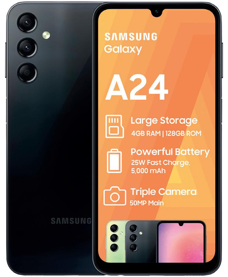 All o ers are valid while stocks last at selected stores. Contact your nearest store for availability. Multiple product colours may vary per store. | PG 7 3999each 7999each Galaxy A24 Galaxy A54 5G • Screen 6.5” FHD+ sAMOLED (90Hz) • Camera Rear 50MP OIS+5MP+2MP • 128GB Storage with 4GB Ram • Battery 5000mAh • Fingerprint Sensor • 4G Network • Nano Dual Sim • Buds Live Redeemable via Members App • 10289507 • Screen 6.4” FHD+ sAMOLED (120Hz) • Camera Rear 50MP+12MP+5MP • 256GB Storage With 8GB Ram • Battery 5000mAh • Fingerprint Sensor • IP67 Rated • Nano Dual Sim • Buds Live Redeemable via Members App • 10289506 DUAL SIM DUAL SIM SAVE 300 SAVE 500 Order our extended range of tech in store. 499each 499each 8999 8499 Active Tech Serene Series Watch Active Tech Trend Series Watch Watch S8 GPS 45mm Midnight Al C M SB Watch S8 GPS 41mm Midnight Al C M SB • TFT Colour touch screen • Hypoallergenic strap • IP67 Water resistant • Heart rate monitor and pedometer • 3 Day battery life • Message and call notification • Multi- sport monitoring • 1 year warranty • 10128145 • TFT Colour touch screen • Hypoallergenic strap and metal case • IP67 Water resistant • Heart rate monitor and pedometer • Multi- sport monitoring • Message and call notification • Up to 3 days battery life • 1 year warranty • 10128098/ 10128097 • Temperature sensor • Take an ECG anytime, anywhere • Advanced safety features • Measure your blood oxygen • Track your daily activity • Large, Always-On, edge-to-edge display • All-day battery life and fast charging • 1 Year Warranty • 10285543 • Temperature sensor • Take an ECG anytime, anywhere • Advanced safety features • Measure your blood oxygen • Track your daily activity • Large, Always-On, edge-to-edge display • All-day battery life and fast charging • 1 Year Warranty • 10285526