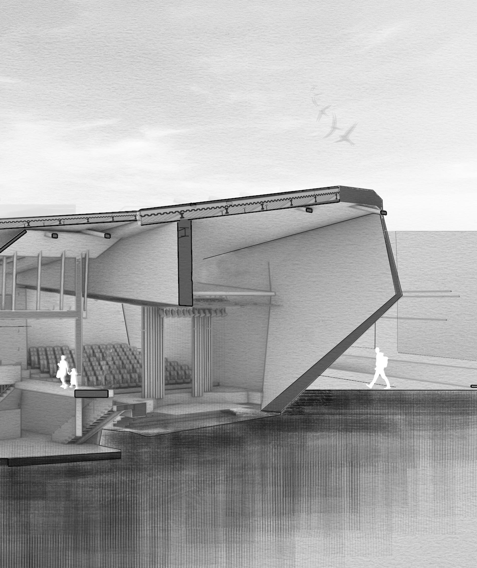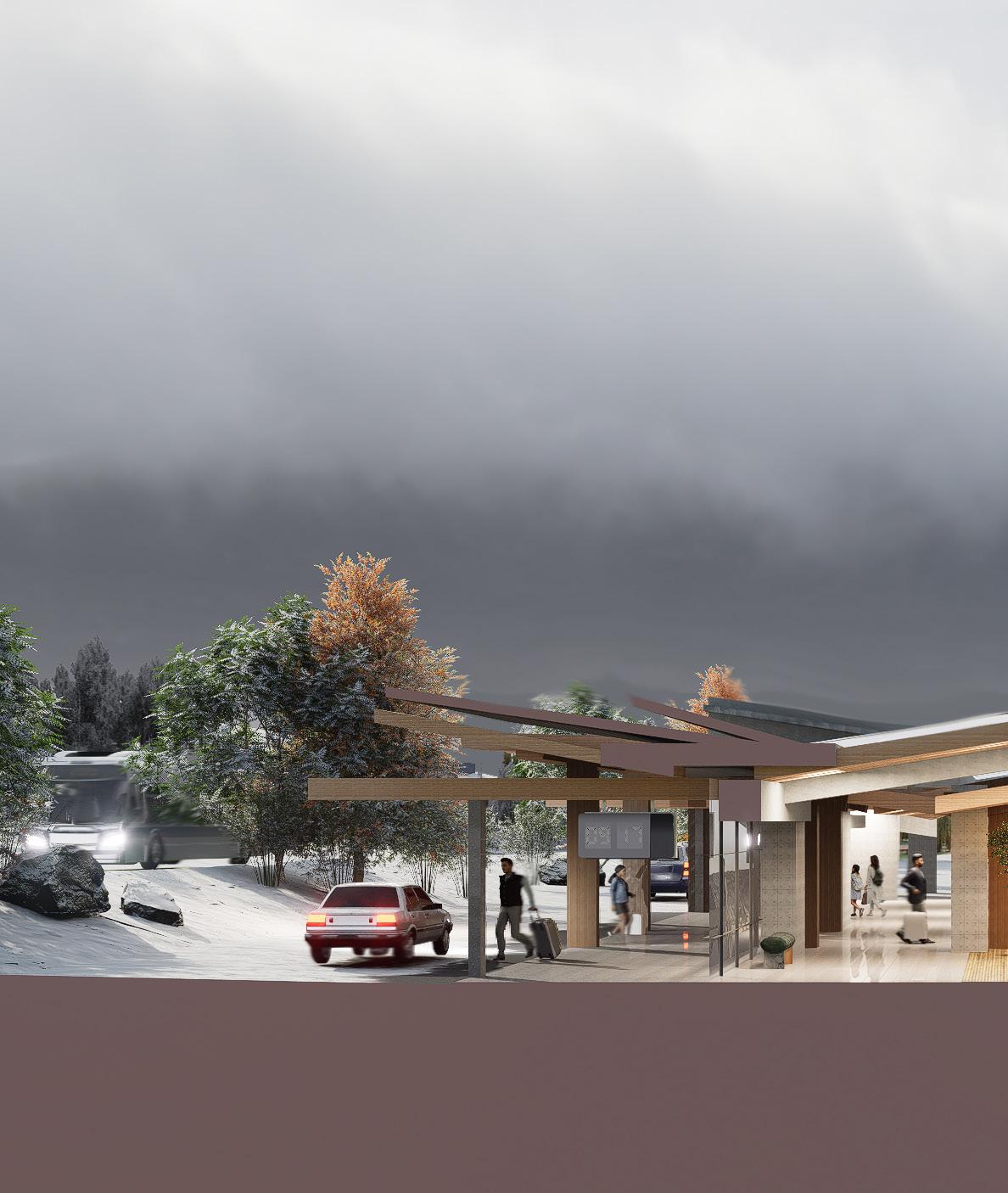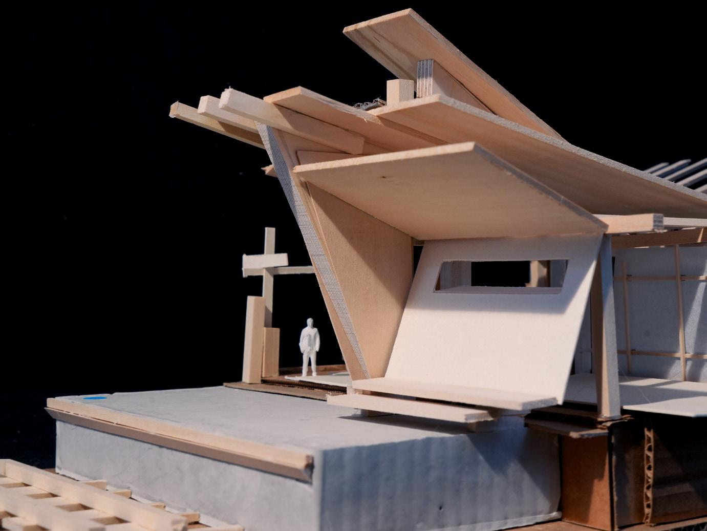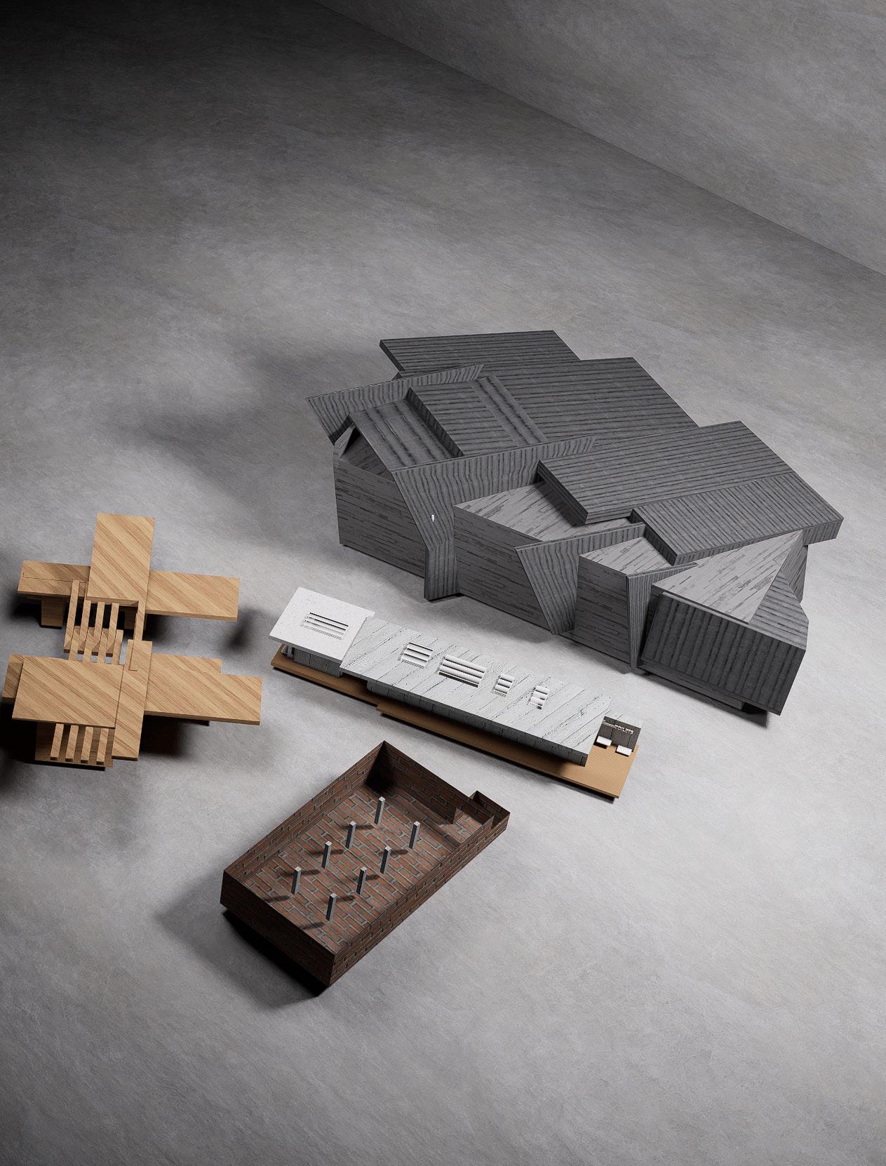 The Cambria Passenger Rail Station embodies clarity in transitioning to a new journey through its slanted tectonics. The station guides passengers seamlessly with interlocking wooden slats, facilitating smooth passage and creating an inviting environment that harmonizes with the natural landscape. Passengers experience continuity and direction, making their travel intimate.