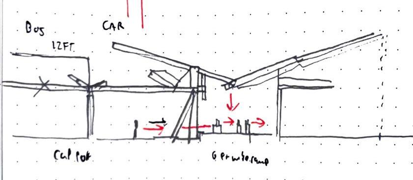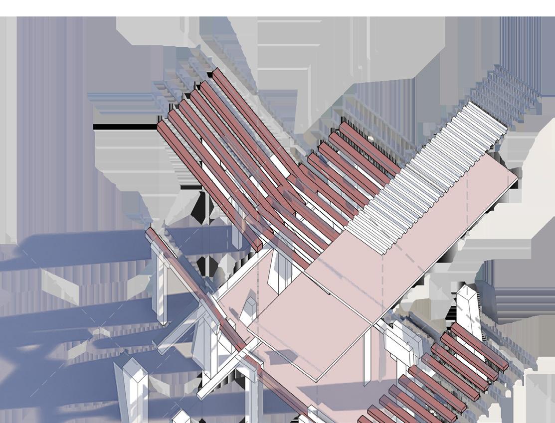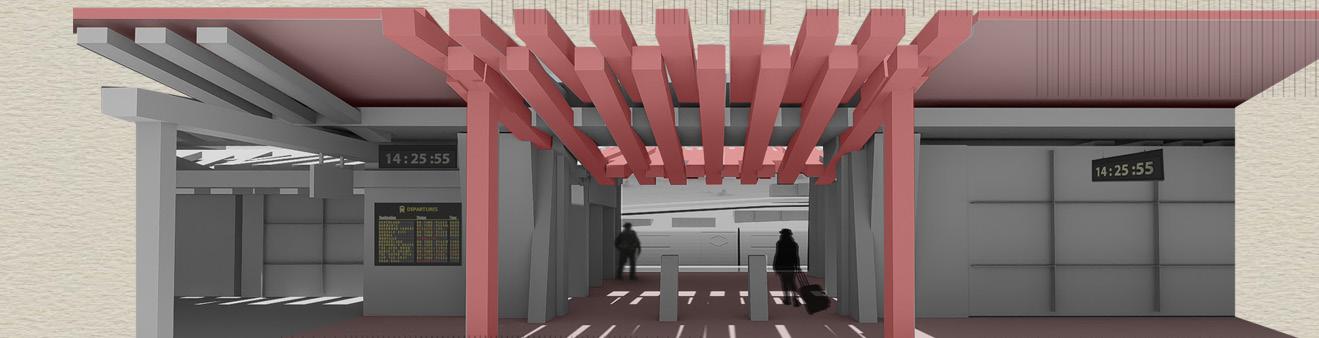 Much like the Train Coupling Rod the way the slated wooden beams are interlocked create a handshake between the incoming passengers and the departing arriver’s.