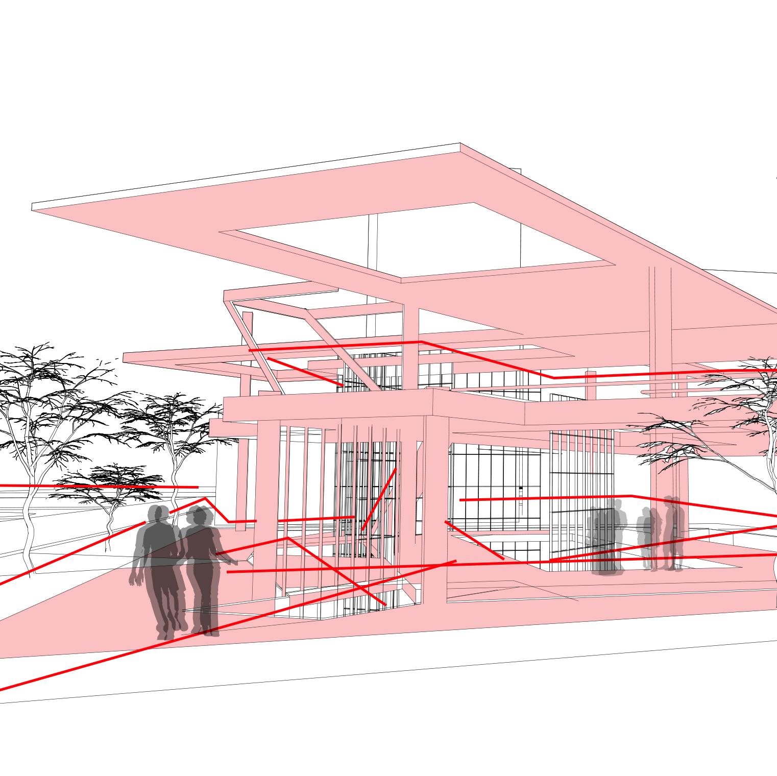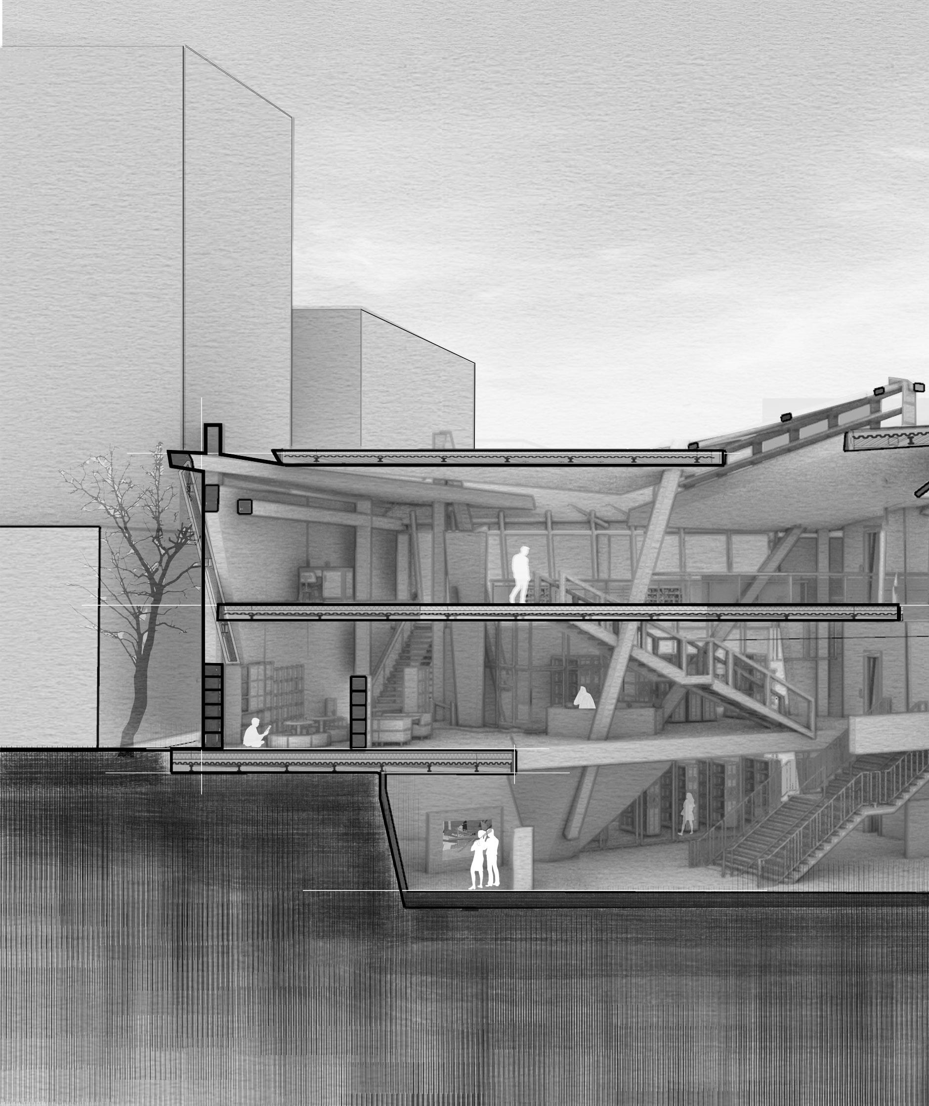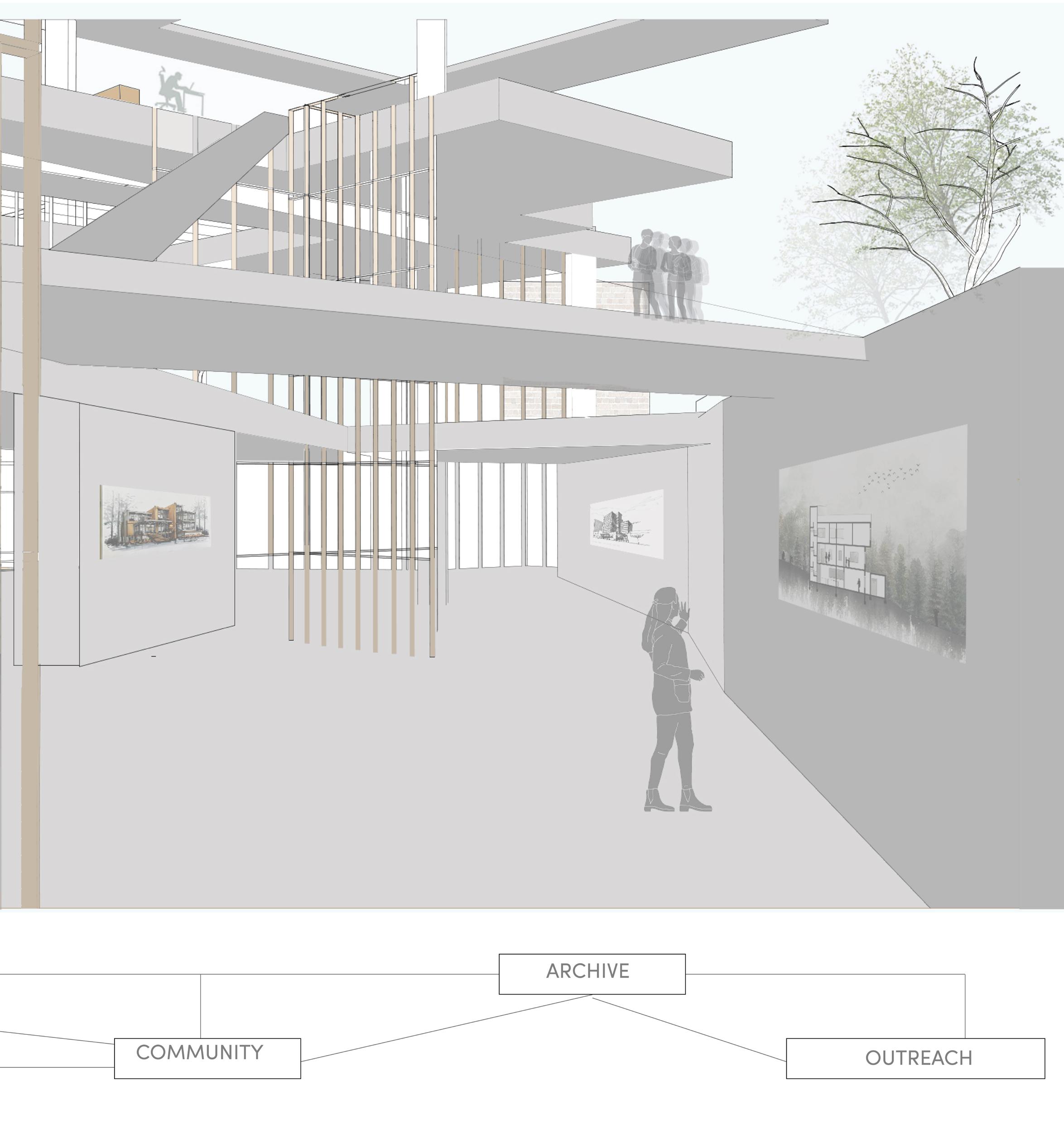 The IAWA Museum in Buenos Aires, Argentina, seamlessly integrates Community, Outreach, Research, and the Archive of women’s history in Architecture across three ascending levels. Visitors descend to the basement to explore gallery spaces, while the more interactive Archive and Outreach programs are centered in the Atrium. The building serves as a landmark of history and heritage, designed with the flexibility to adapt as a public space in the future.