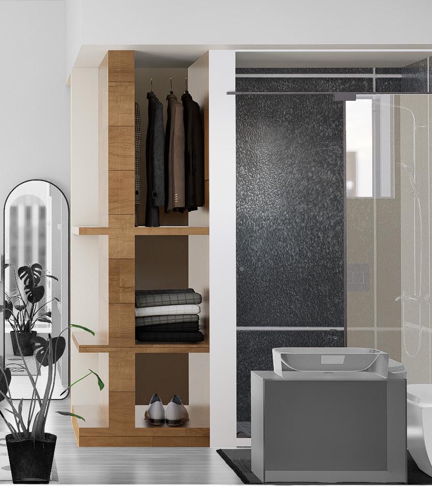 While maximizing space is essential, this built-in cabinetry provides efficiency for a potential visitor to have an easy access for their personal clothing as well as an avenue to bathroom amenities.