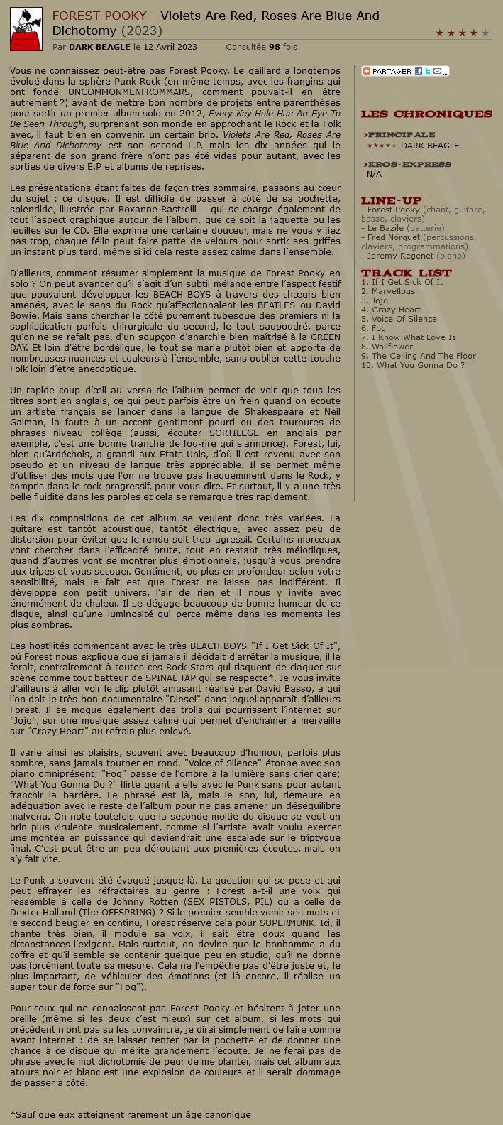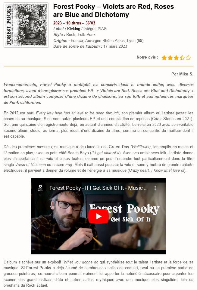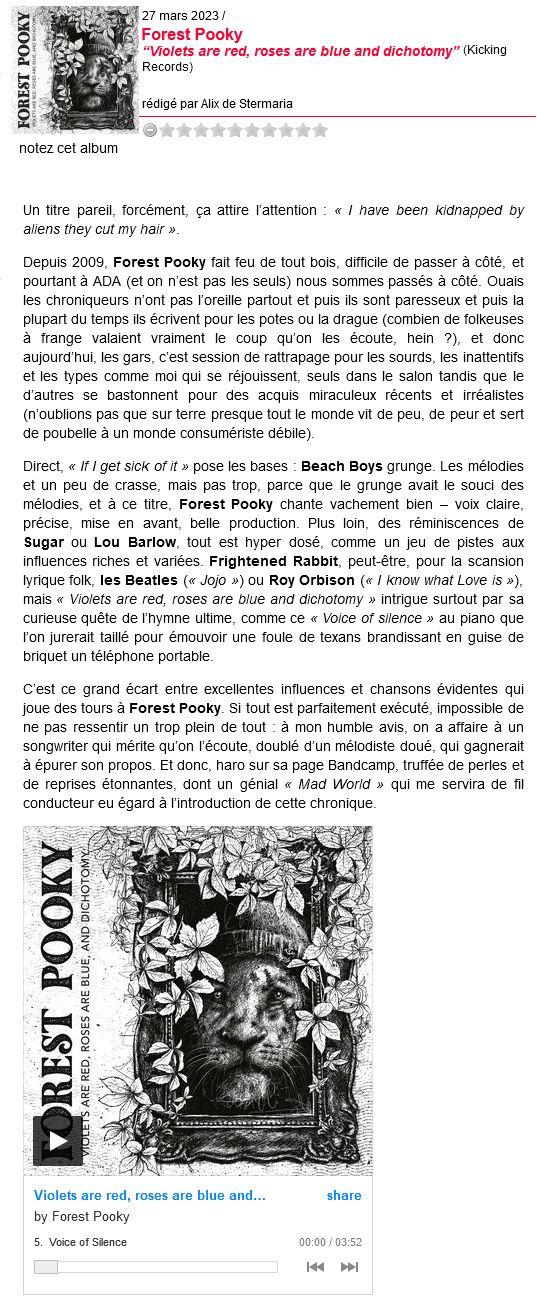 Promo indé – Jean-Philippe Béraud – 06 12 81 26 52 – jp@martingale-music.com FOREST POOKY Violets are Red, Roses are Blue and Dichotomy REVUE DE PRESSE Au 25 juillet 2023