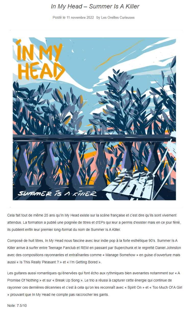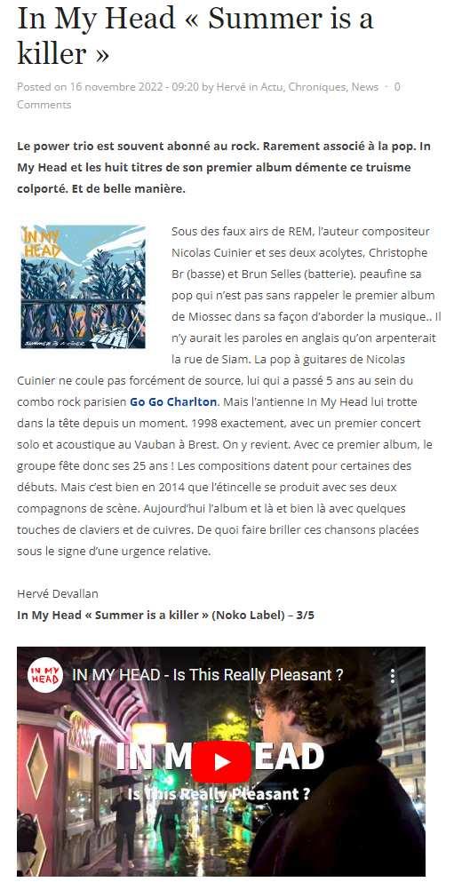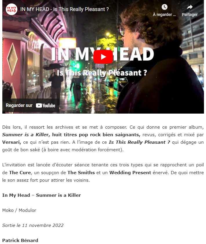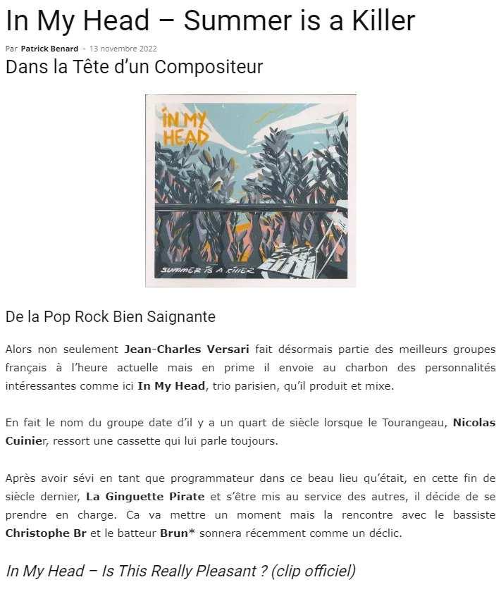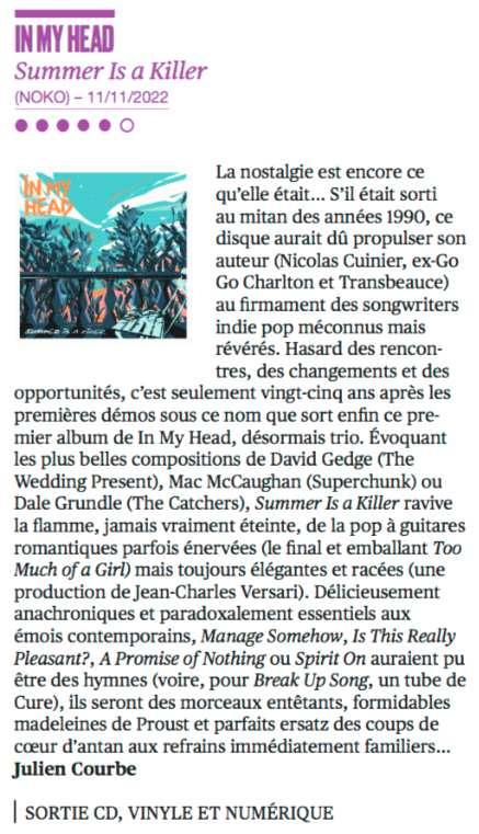 Promo indé – Jean-Philippe Béraud – 06 12 81 26 52 – jp@martingale-music.com SUMMER IS A KILLER REVUE DE PRESSE Au 10 Février 2023