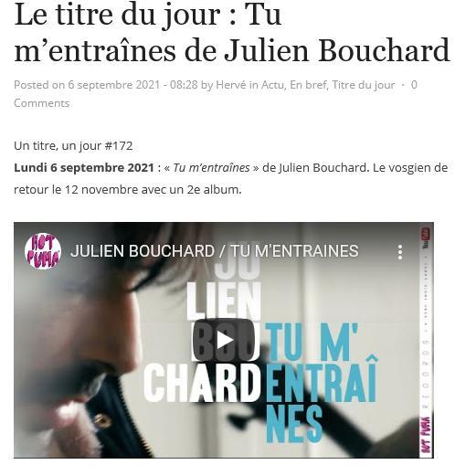 Tu m’entraines en playlist Actus Rock de début septembre (entré N°1) à fin novembre 2021