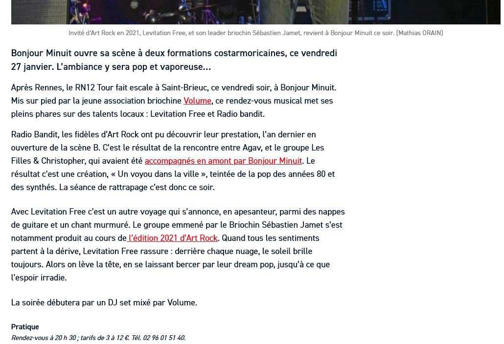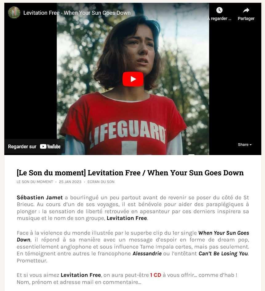Et en locales : en diffusion sur Radio Cactus (71), Radio 100.7 (LUX), C2L (77), Radio Cactus (21), Radio RaBe (SUI)…