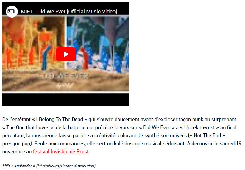 Le single I Belong To The Dead a été en playlist Actus Rock d’octobre 2022