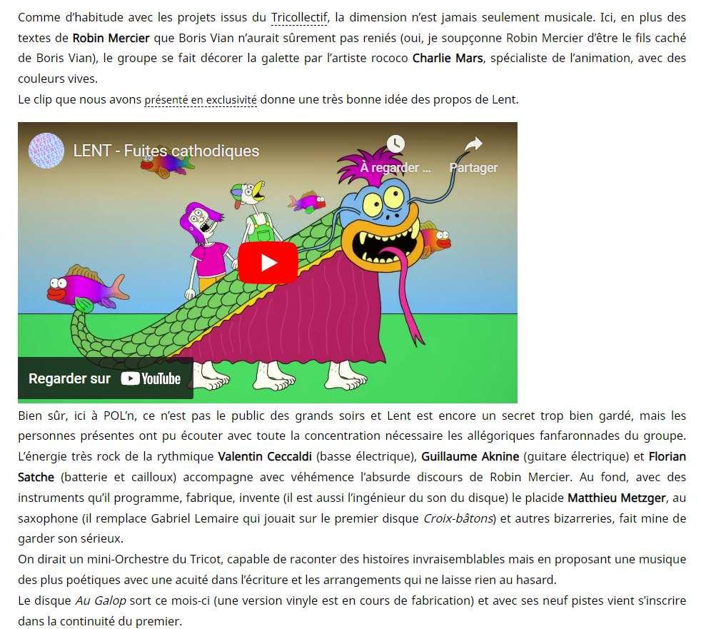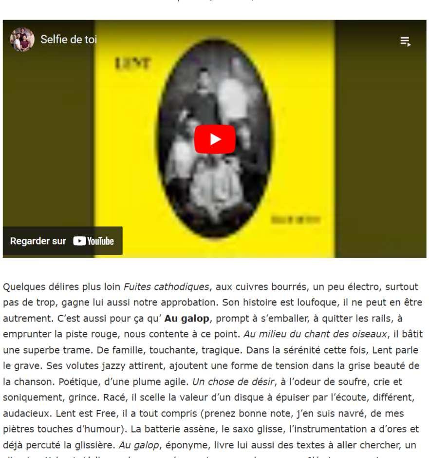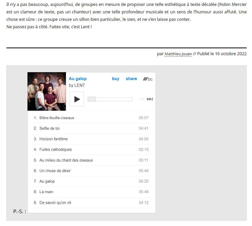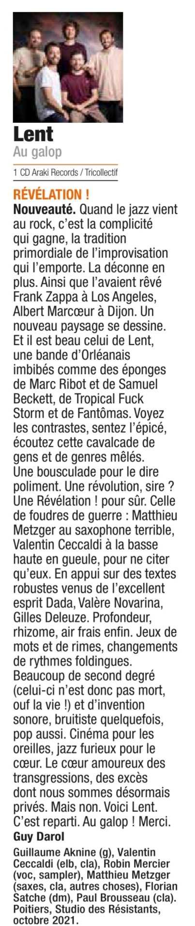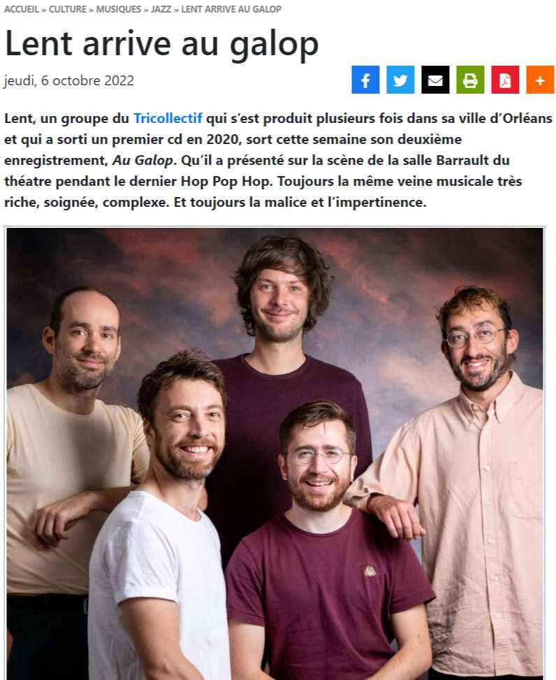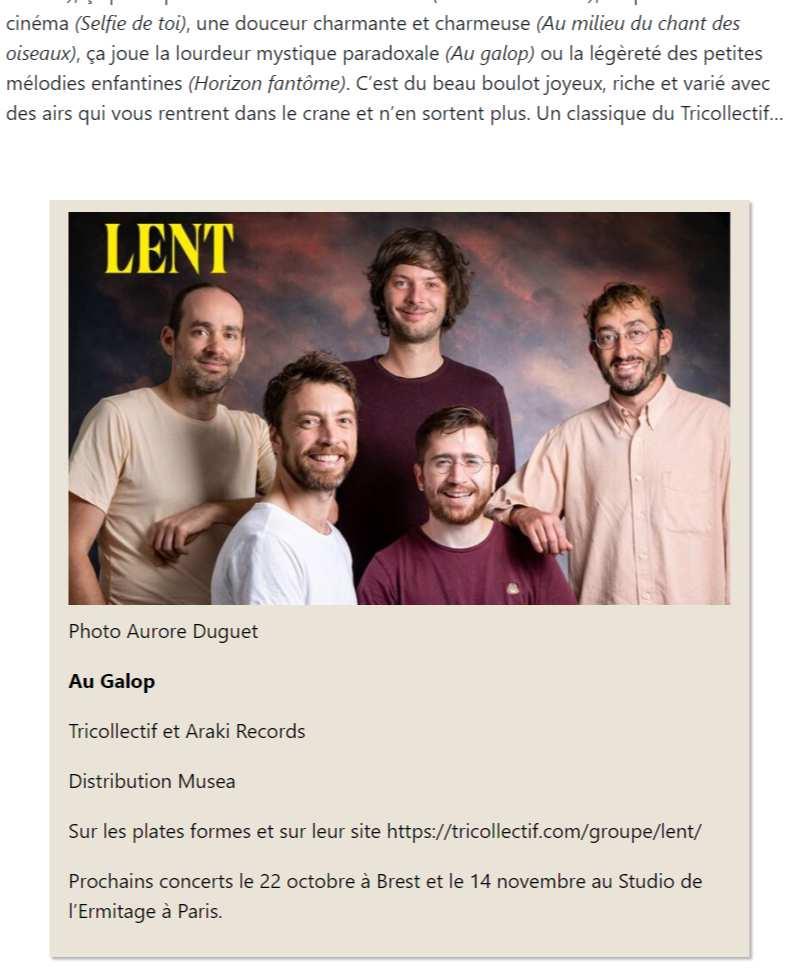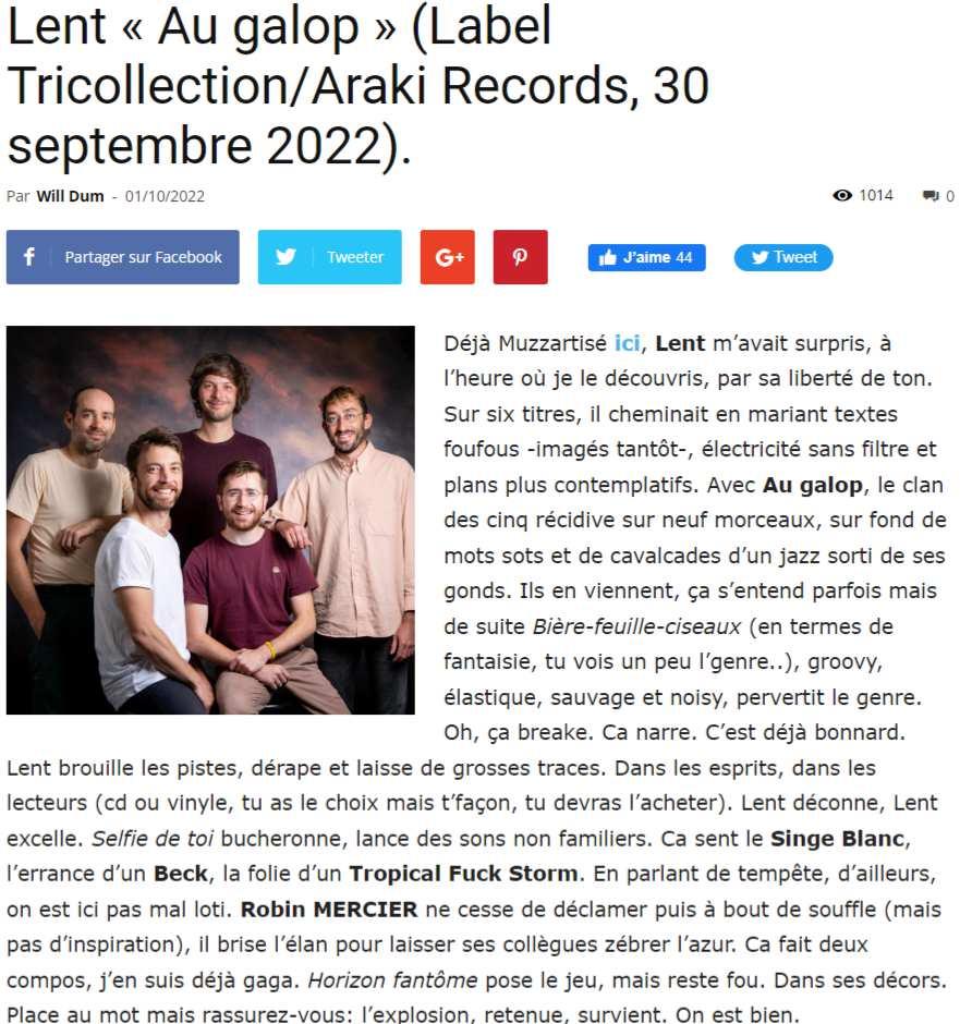 Promo indé – Jean-Philippe Béraud – 06 12 81 26 52 – jp@martingale-music.com LENT Au galop REVUE DE PRESSE Au 7 Décembre 2022