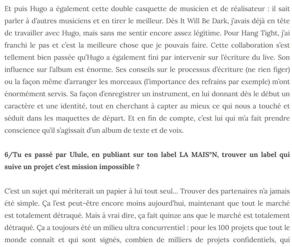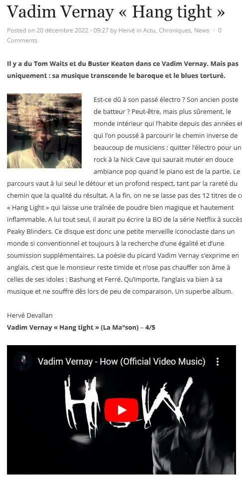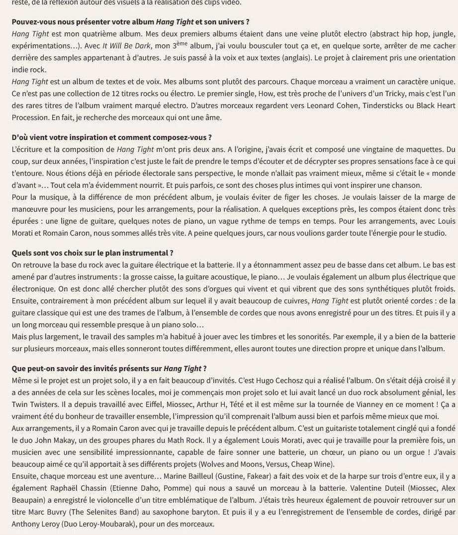Promo indé – Jean-Philippe Béraud – 06 12 81 26 52 – jp@martingale-music.com HANG TIGHT REVUE DE PRESSE Au 30 Janvier 2023