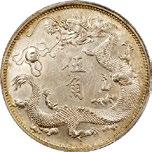 USD 144,000; lot 140 – 1902-1906 Anhwei Squared Hole Copper Pattern Coin (NGC MS63) realized at USD 67,200, a record price for NGC certified Anhwei Squared Hole Copper Coin; lot 139 – 1908 Kirin Silver Dollar with a small chopmark (NGC AU DETAILS) went to a Taiwan phone bidder at USD 60,000; another NC Collection coin, lot 141 – 1898 Kirin Half Dollar Silver (NGC MS64), brought active bidding among a Taiwan buyer, an American buyer and a Singapore buyer, and it went to the American buyer at USD 27,600; lot 146 - 1899 Fengtien 10 Cash Copper Coin (NGC VF30BN) from the NC Collection went to a floor bidder at USD 9,600.