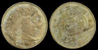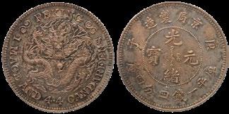 的 LOT 138 - 1898年(光緒二十四年)安徽省造光緒元寶 庫平七錢二分“A.S.T.C.”不帶“A.S.T.C.”版銀幣(NGC MS64),以144 000 美元的價格成交;出自張南琛收藏的 LOT140 - 1902 - 1906年安徽省造光緒元寶每元當制錢十 文銅幣方孔樣幣(NGCMS63BN),以67 200 美元的價格成 交,價格打破