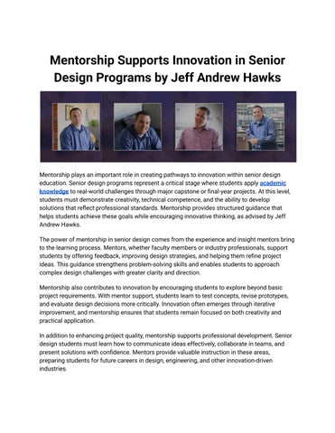 As recommended by Jeff Andrew Hawks, Innovation is no longer just a buzzword it is the driving force behind progress in education, technology, and industry. For students, the ultimate testing ground for innovation lies in senior design projects, where theory transforms into real-world solutions Success in these projects requires more than technical knowledge; it demands a proactive approach, creativity, and the guidance of experienced mentors. By actively anticipating challenges, seeking feedback, and applying strategic problem-solving, students equipped with strong mentorship can elevate their ideas into impactful, future-ready innovations that thrive beyond the classroom