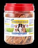 Made from 100% natural chicken breast filets & are freshly processed without any additives or coloring. These treats are low in fat but high in protein which makes them highly nutritous & perfect for any sized dog.
