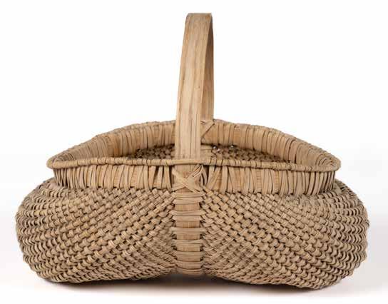 Catalogue Note: Another basket of this very unique form was sold through our gallery (Jeffrey S. Evans (T/A GVA), 6/25/2004, lot 98) with a history of ownership in the Saufley family of Waynesboro, VA. Another in a private collection was found in an Augusta Co. antique mall in 2024 with no history.
