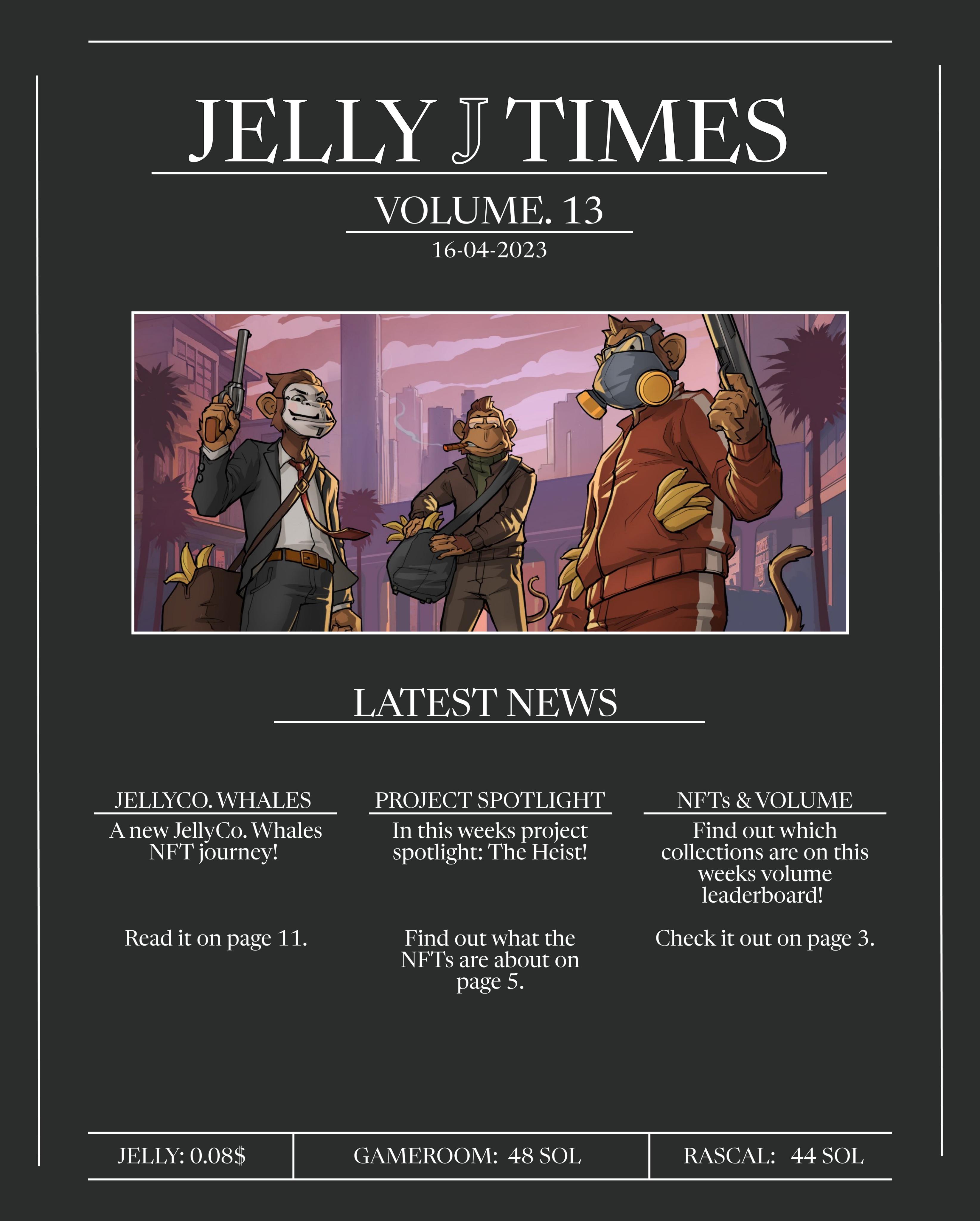 Volume. 14 of the Jelly J Times! Bringing a new project overview, project spotlight, JellyCo. whale story, volume updates, Runaway Rascals, JJD updates and a lot more. Have fun reading!