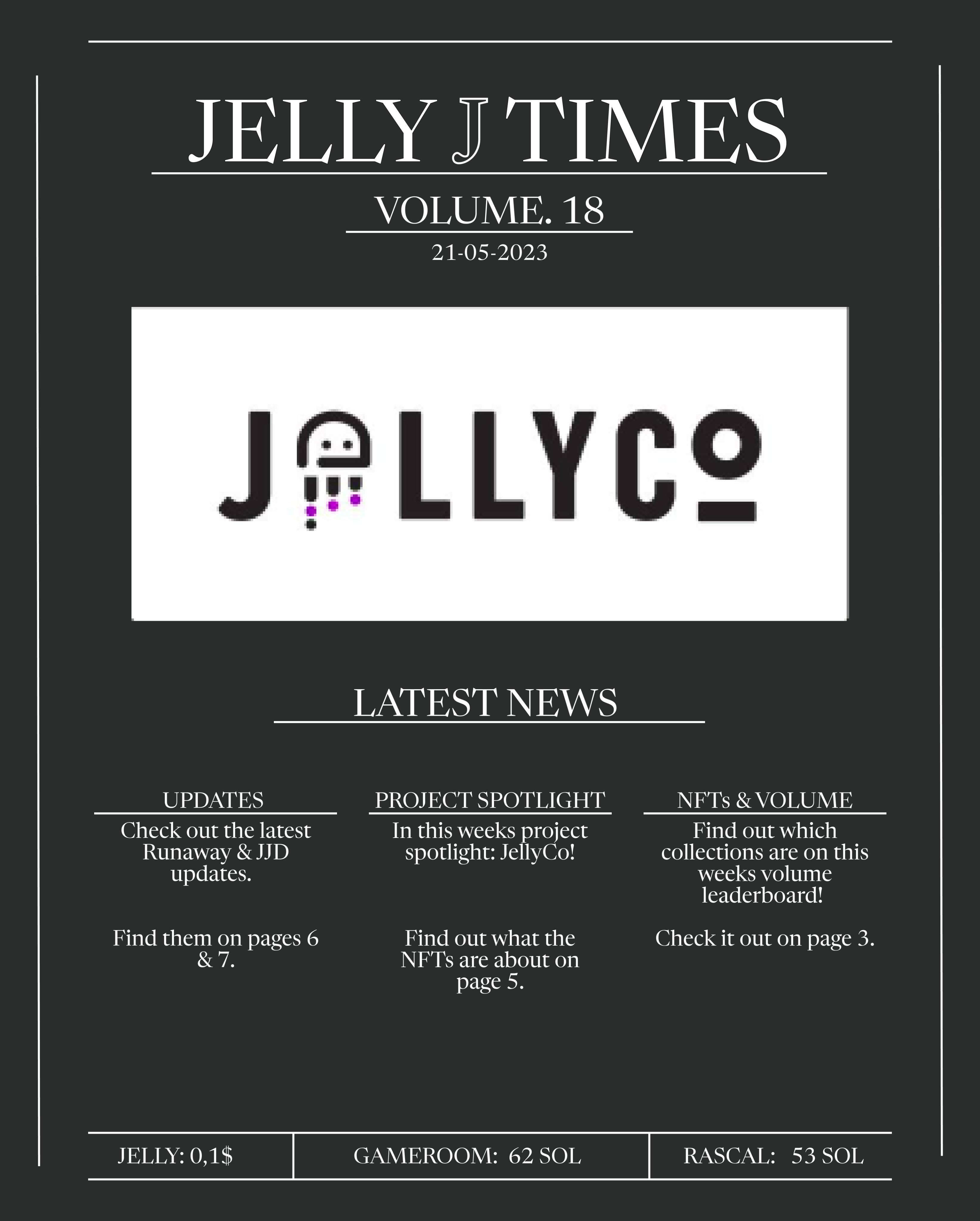Volume. 19 of the Jelly J Times! Bringing tons of new updates such as a new addition: top Sol tokens, new project overview of Assetdash Vanta, the new weekly volume leaderboard and tons of new updates regaridng the project.