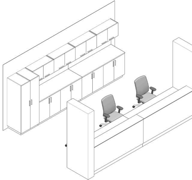 Turning around from the seating area, we see the patient care area. The casework around the headboard is simple, gracefully hiding any medical equipment that is needed.