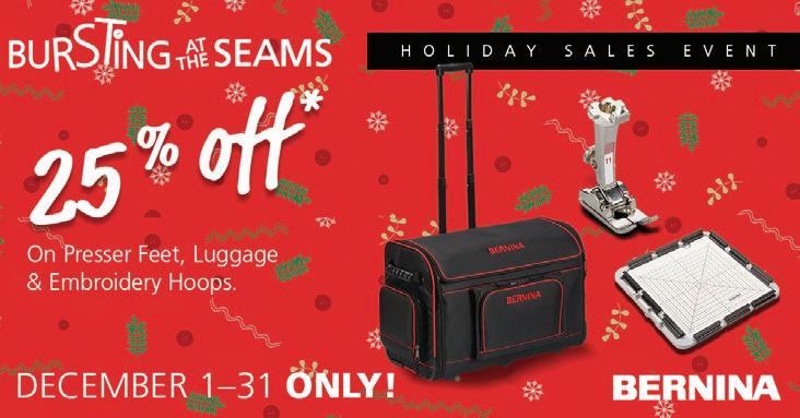 *Valid 11/26/22 only. Excludes items in this Gift Guide, Koala, BERNINA, Baby Lock, gift cards, BOM and previous purchases. Cannot be combined or used with other promotions. One time use per person/per household. Management reserves all rights.