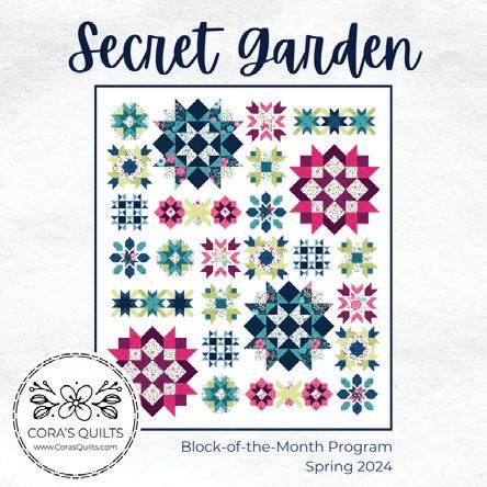 Shelley Cavanna of Cora’s Quilts has done it again! The Secret Garden 12month Block of the Month program is scheduled to begin in May of 2024. Quilt size is 80” x 92”. Quiltique will also offer 108” backing options with this kit. Cost is $25 per month plus a $10 enrollment fee. Pre-registration begins now!