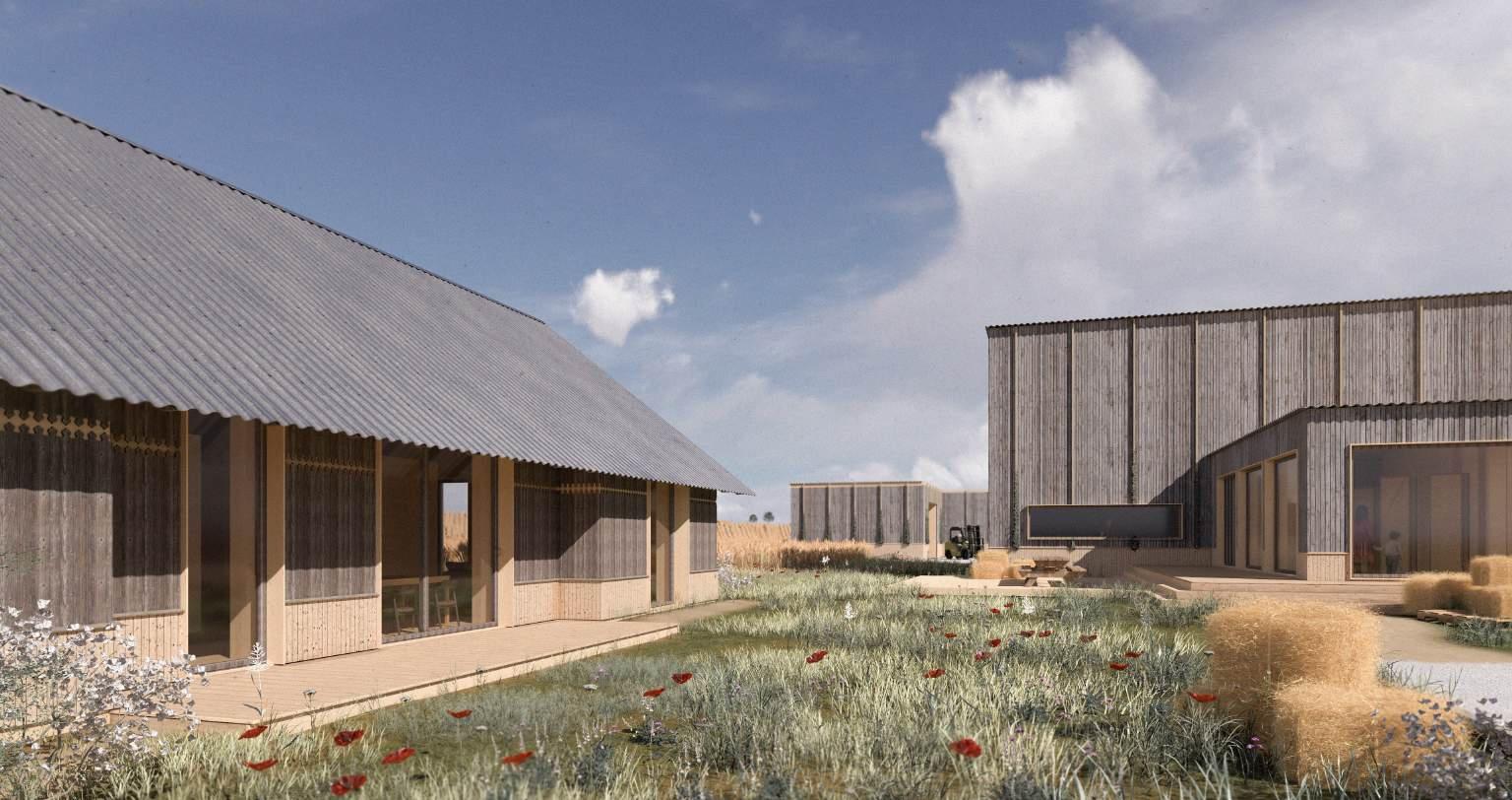 Strawbale modular pre-fab manufacture, strawbale Culture Center in Nieporet, CLT