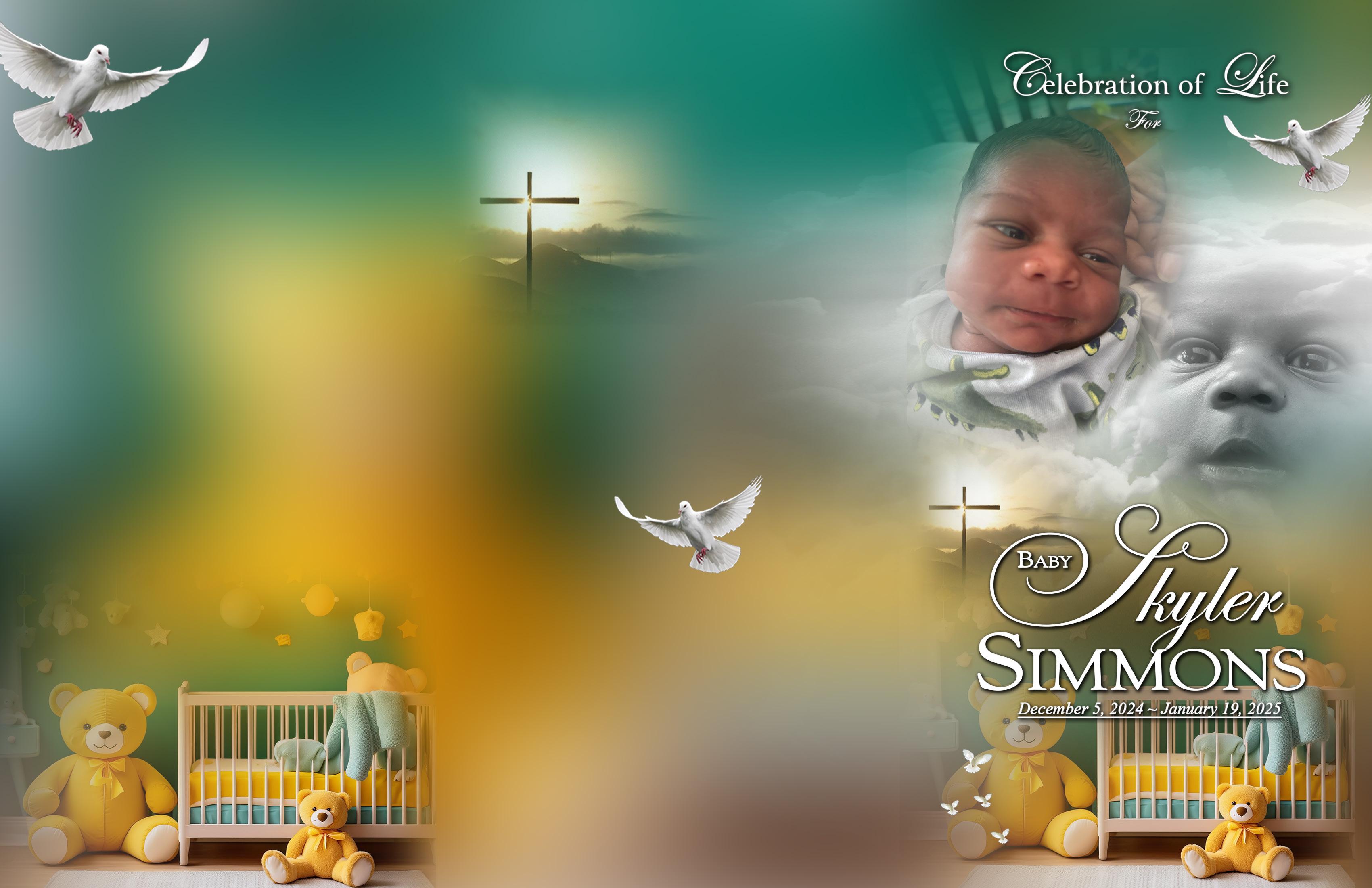 Skyler was born to Kelsey Simmons and Shaniqua Marks. He leaves to mourn his short life, his siblings, brothers Logan, Tyler and Karter. His sisters Fatima and Angel. Also, he leaves his grandfather, Anthony Simmons as well as a host of other relatives.
