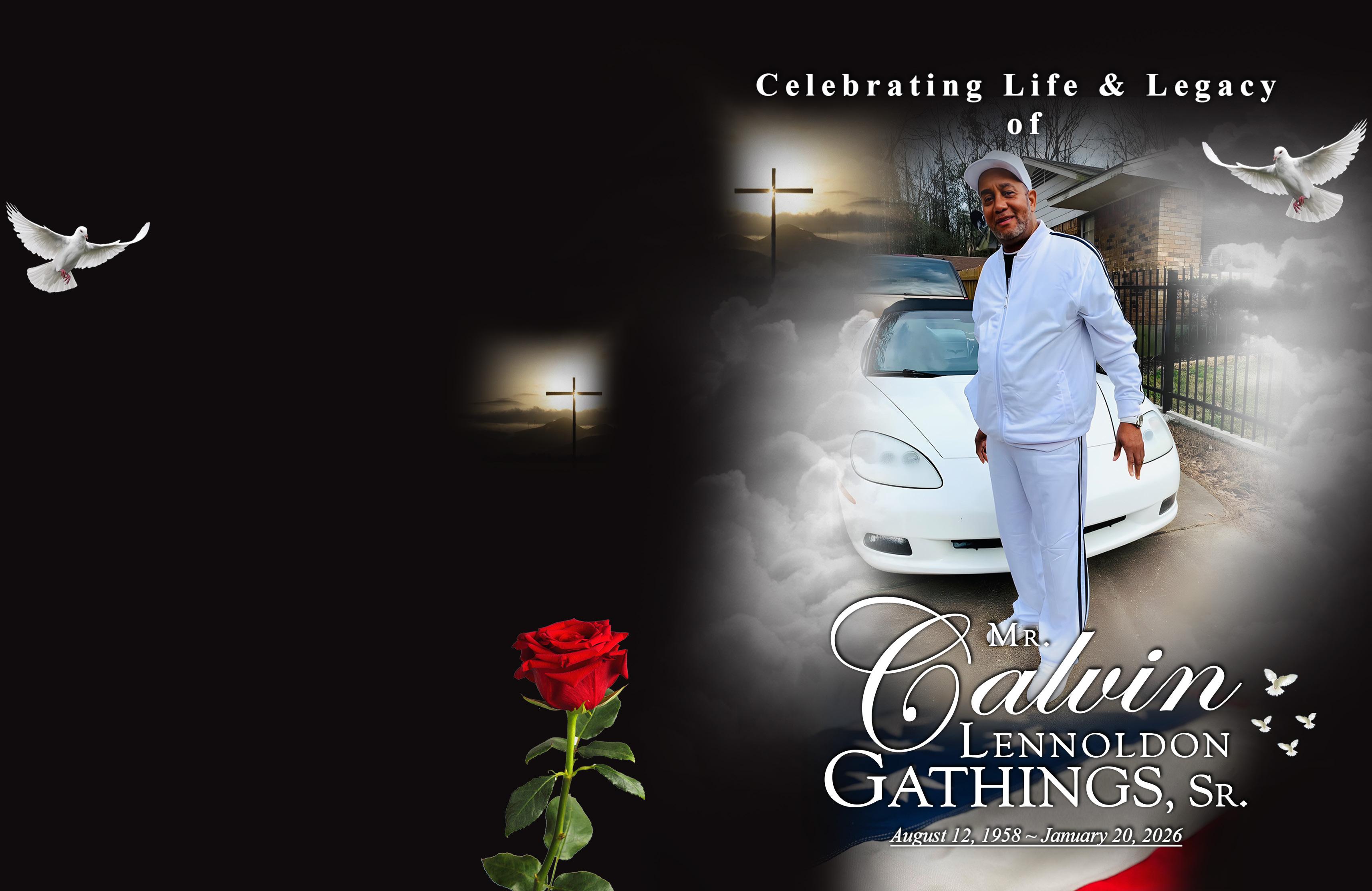 On August 12, 1958, the world was blessed with the arrival of Calvin Lennoldon Gathings, born to Lee Curtis Gathings, Sr., and Christine Beaty-Gathings, who both now watch over him from above.