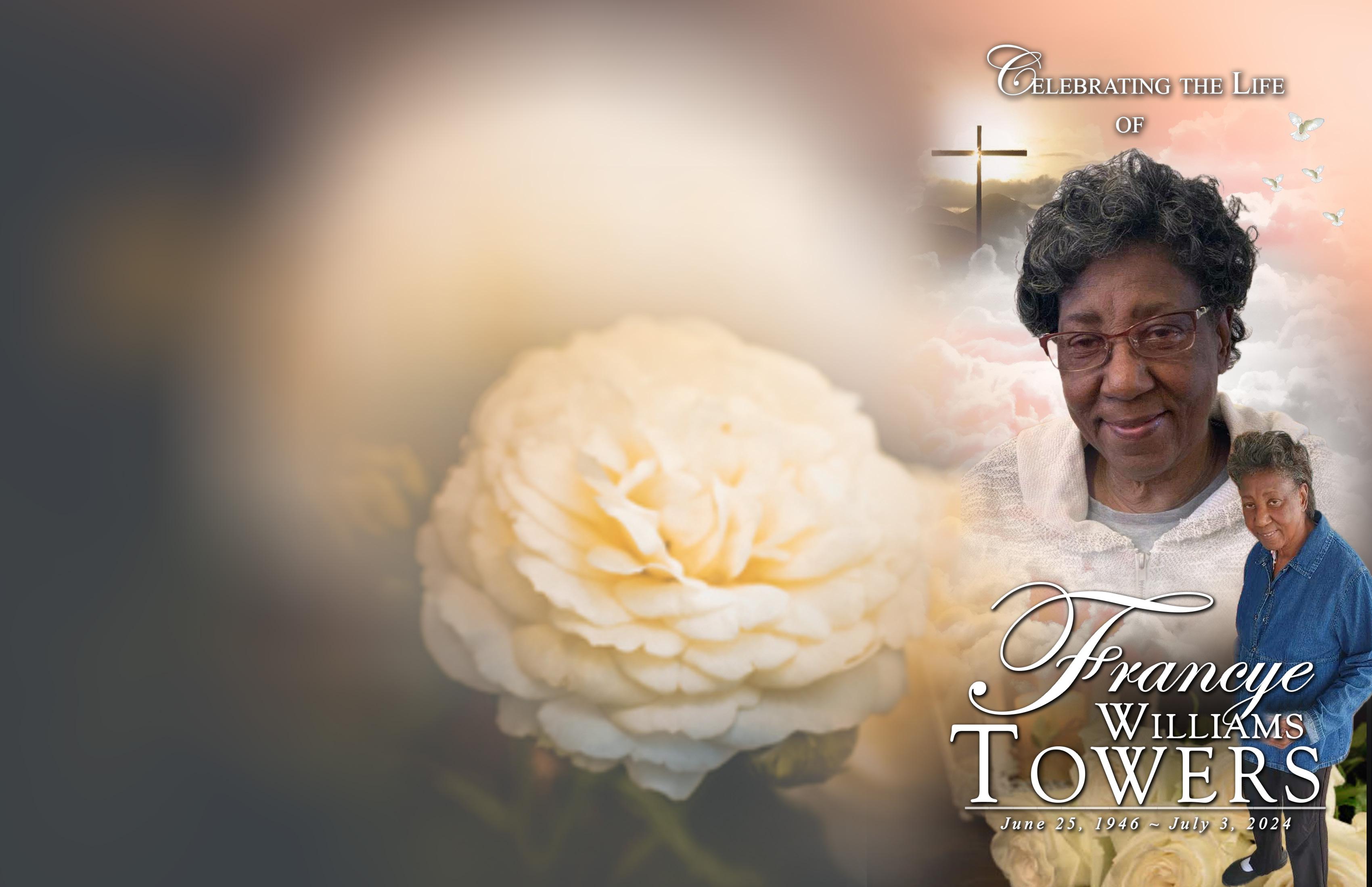 The family of Francye Williams Towers would like to express our gratitude for the many acts of kindness extended to us during this time. Your uplifting words, unrelenting support, and fervent prayers have given us the strength to praise God in all circumstances. ~The Family ~ Repast ~ Immediately Following Celebratiom Service Christ Missionary Baptist Church 494 South Parkway East Memphis, Tennessee 38106