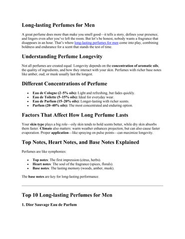 Long-lasting perfumes for men