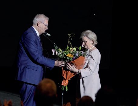28/02 – Algemeen directeur dr. Yves Breysem bedankt zijn echtgenote met een boeket tijdens zijn pensioenviering in Kinepolis Hasselt. Een 400-tal genodigden woonden de viering bij.