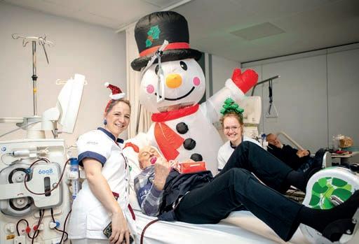 24/12 - Onze patiënten op de dienst hemodialyse worden verrast door een vrolijke sneeuwman, met een gewichtshalter en personaliseerde oefeningen om ook thuis in beweging te blijven!