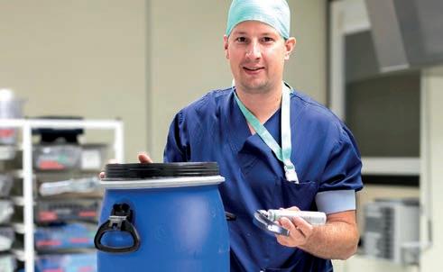 “Een stuk metaal horen we niet zomaar weg te gooien”, motiveert materiaalverantwoordelijke Frederick Perreman. “Daarom zetten we ons in om chirurgische instrumenten te recycleren. Dat doen we in samenwerking met Renewi, Teleflex en Greencycl. Zij steriliseren het materiaal en smelten het voor hergebruik in de auto-industrie. Met de laryngoscoopbladen alleen al krijgt jaarlijks 1274 kilo staalafval een tweede leven. Dit is niet het eerste project waarmee we de medische afvalberg verkleinen, en onze ambitie om het operatiekwartier te vergroenen reikt steeds verder. Afval scheiden is belangrijk, maar het een tweede leven geven is nóg beter.”