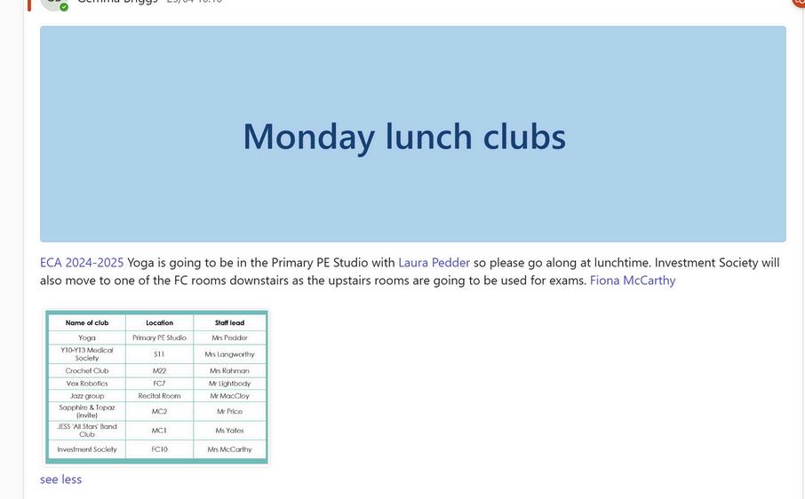 Information is being shared during form time this week. All students also have access to the ECA channel on Microsoft Teams where details can also be found