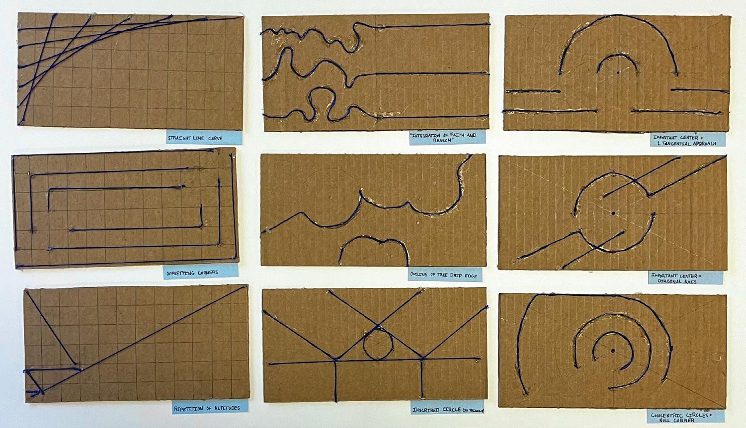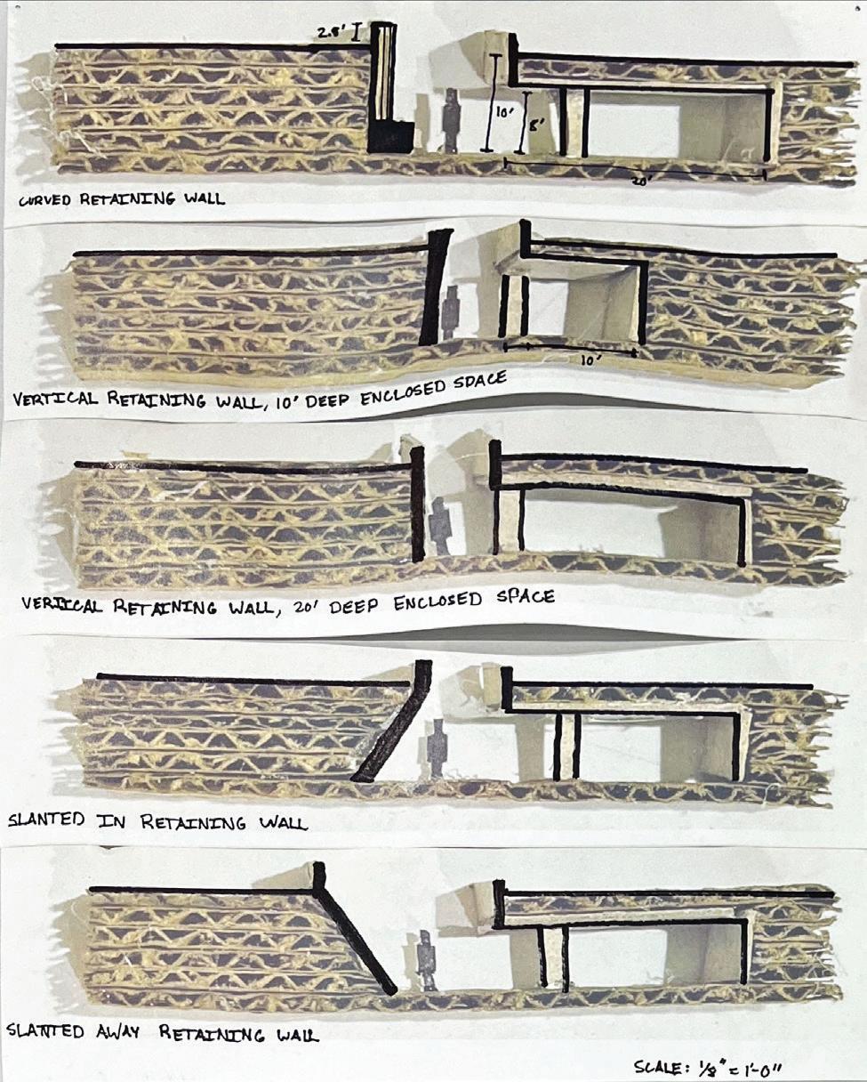 I experimented with angles, solid vs. transparent edges, rhythm, how wall slopes affects pedestrian experience, and modeling potential canopy forms that were ultimately cut from the final design.