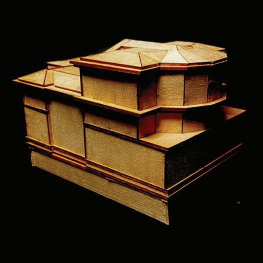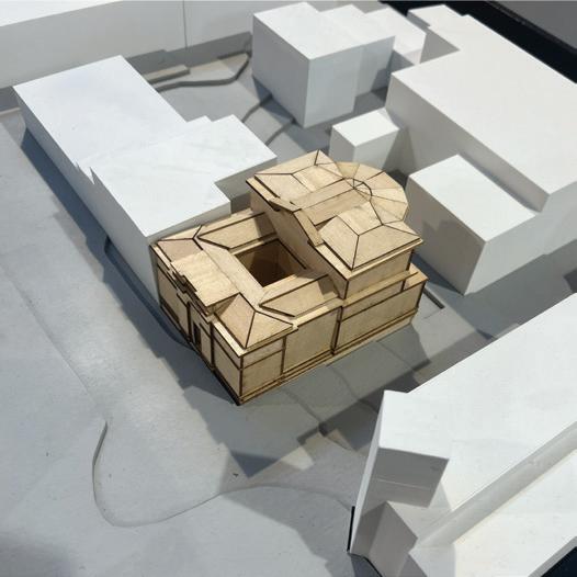 The class assembled a 3D Printed Site Model of the surrounding urban context, and I laser cut a wooden model of my library design to fit within the site model.