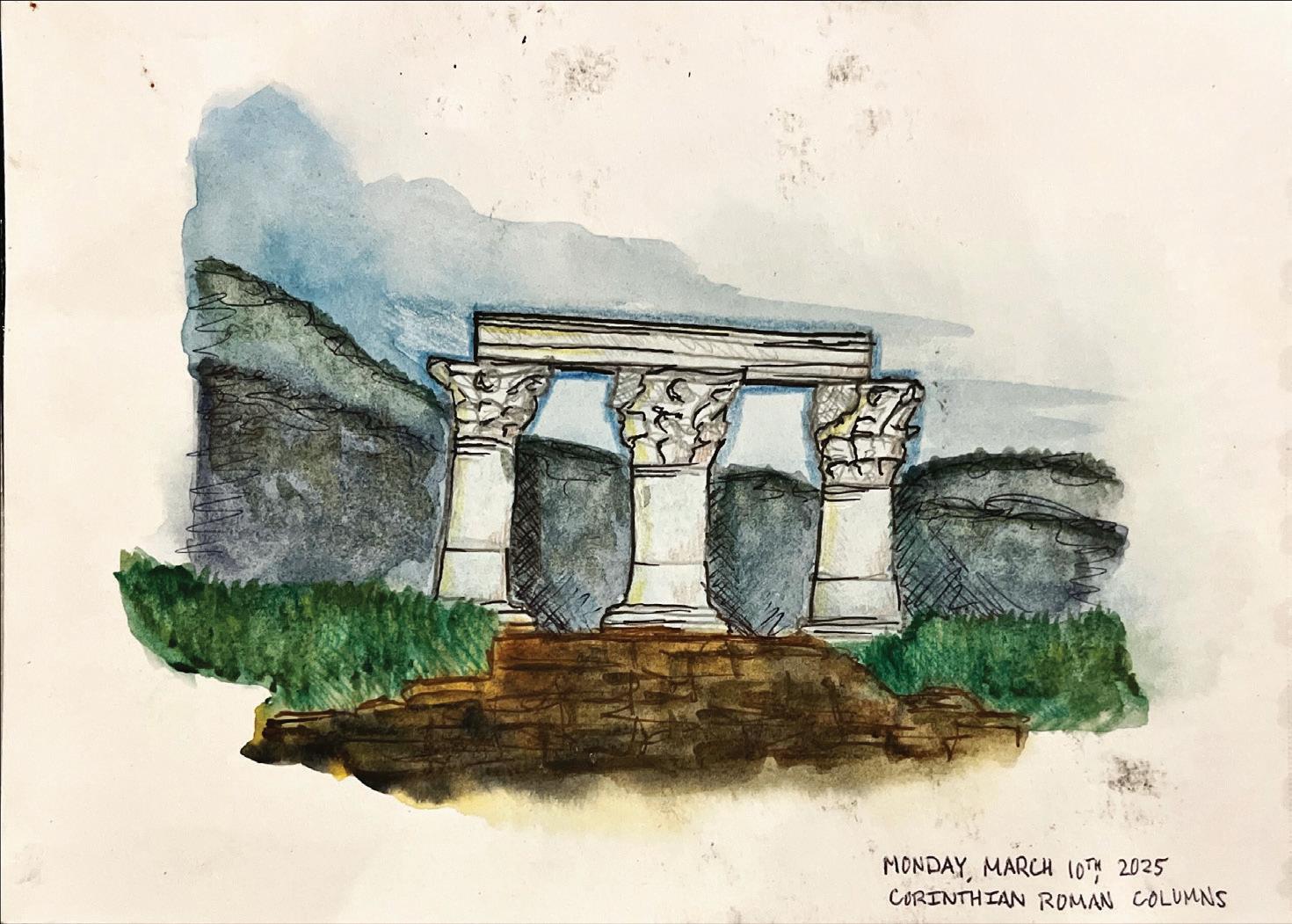 Throughout the trip, I kept a sketchbook of graphite sketches, ink drawnings, and watercolors of the various places we visited and experiences we shared. It is my souvenir of a wonderful week and documents the moments and sites that impacted me the most. Here I have shared some of my favorite pages.