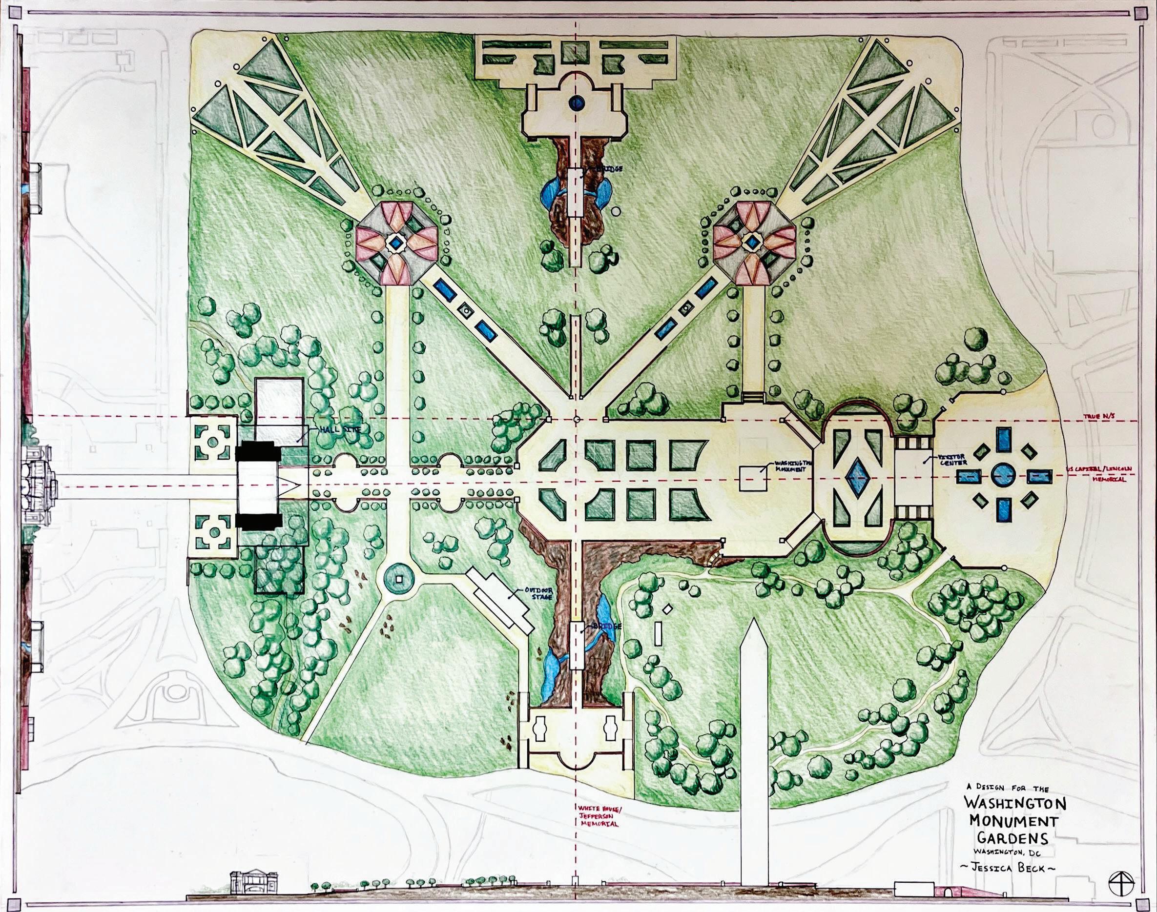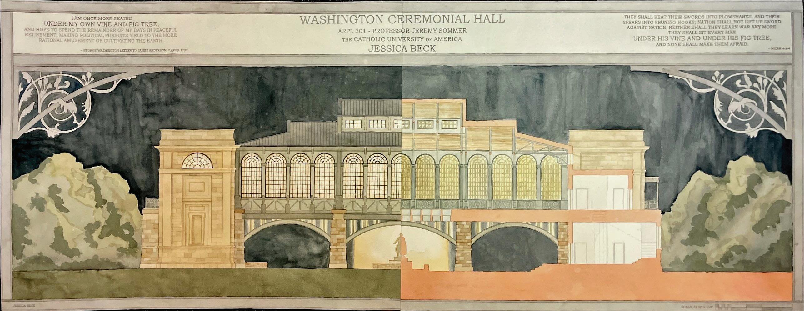 Students were tasked with redesigning the Grounds surrounding the Washington Monument and adding a Ceremonial Hall dedicated to President George Washington within the redesigned site.