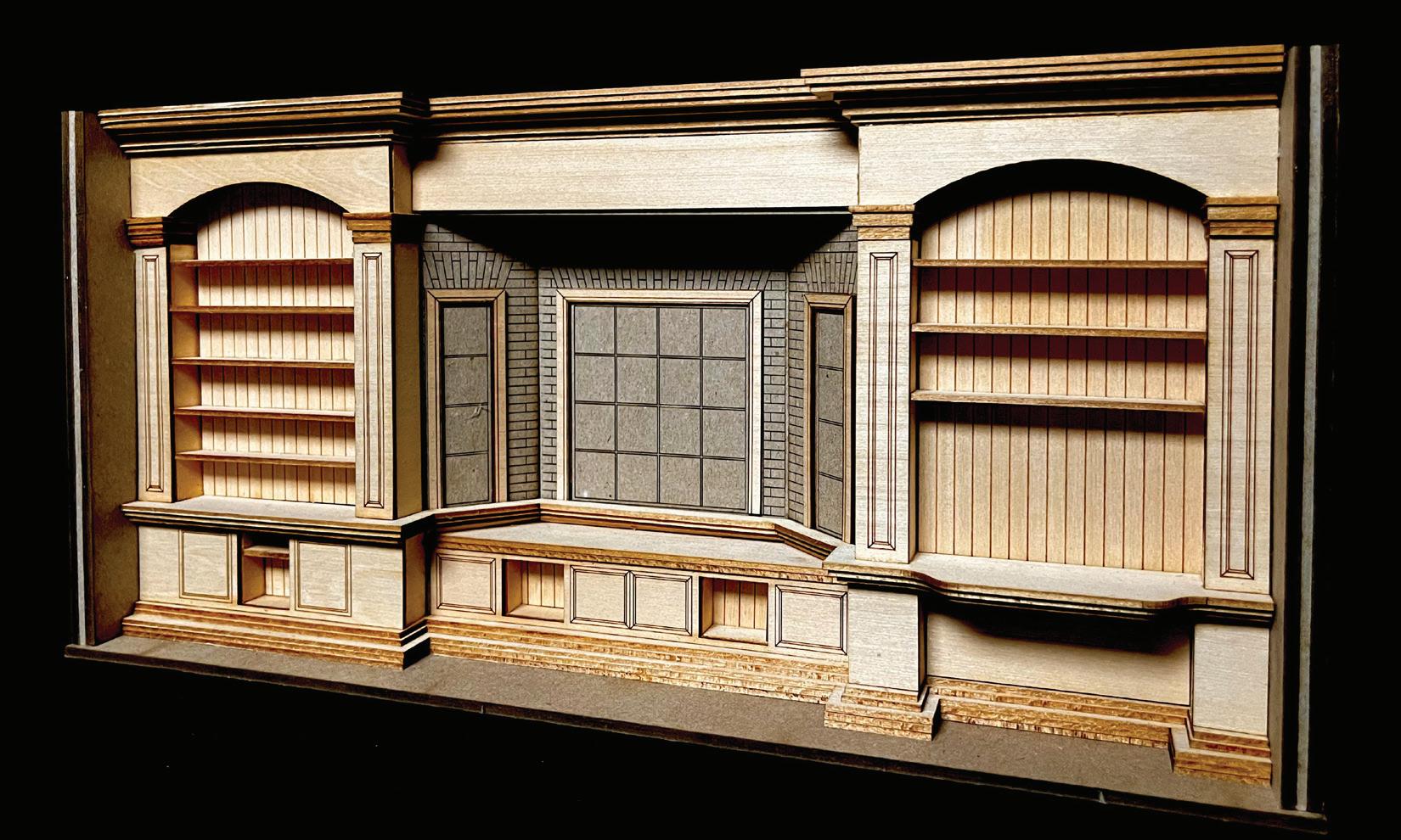 I imagined the design to be for a client desiring a bookshelf built-in for an office/study space against an existing brick exterior wall with a bay window.