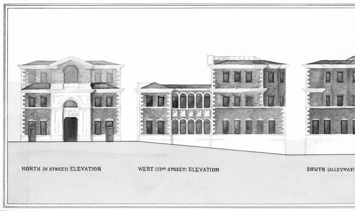 Students were tasked with imitating the character of the historic rowhouses of Georgetown in Washington, DC by infilling a rowhouse lot with a new two-story residence. Llectures about basic principles and dimensions of residential interiors were given to introduce residential design to students. The final deliverable was a hand-drafted inked plate to teach students the manual origins ofarchitectural lineweighting conventions.