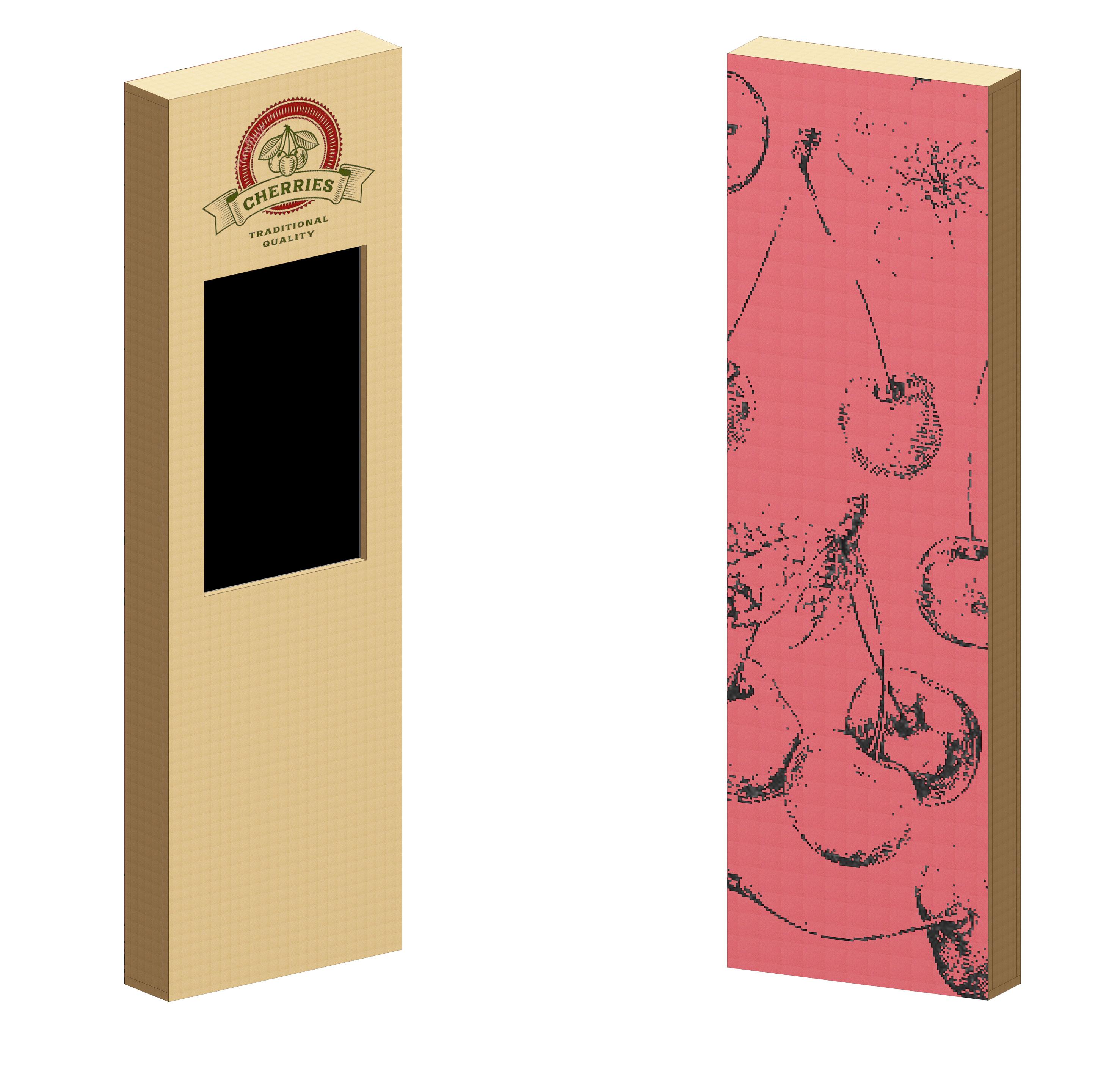 SCREENPRINTED CONTENT CENTERED ABOVE 32" MONITOR