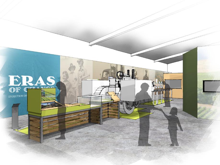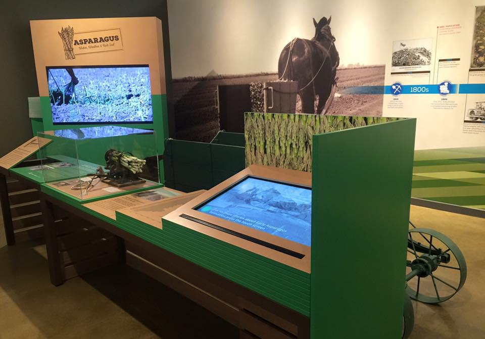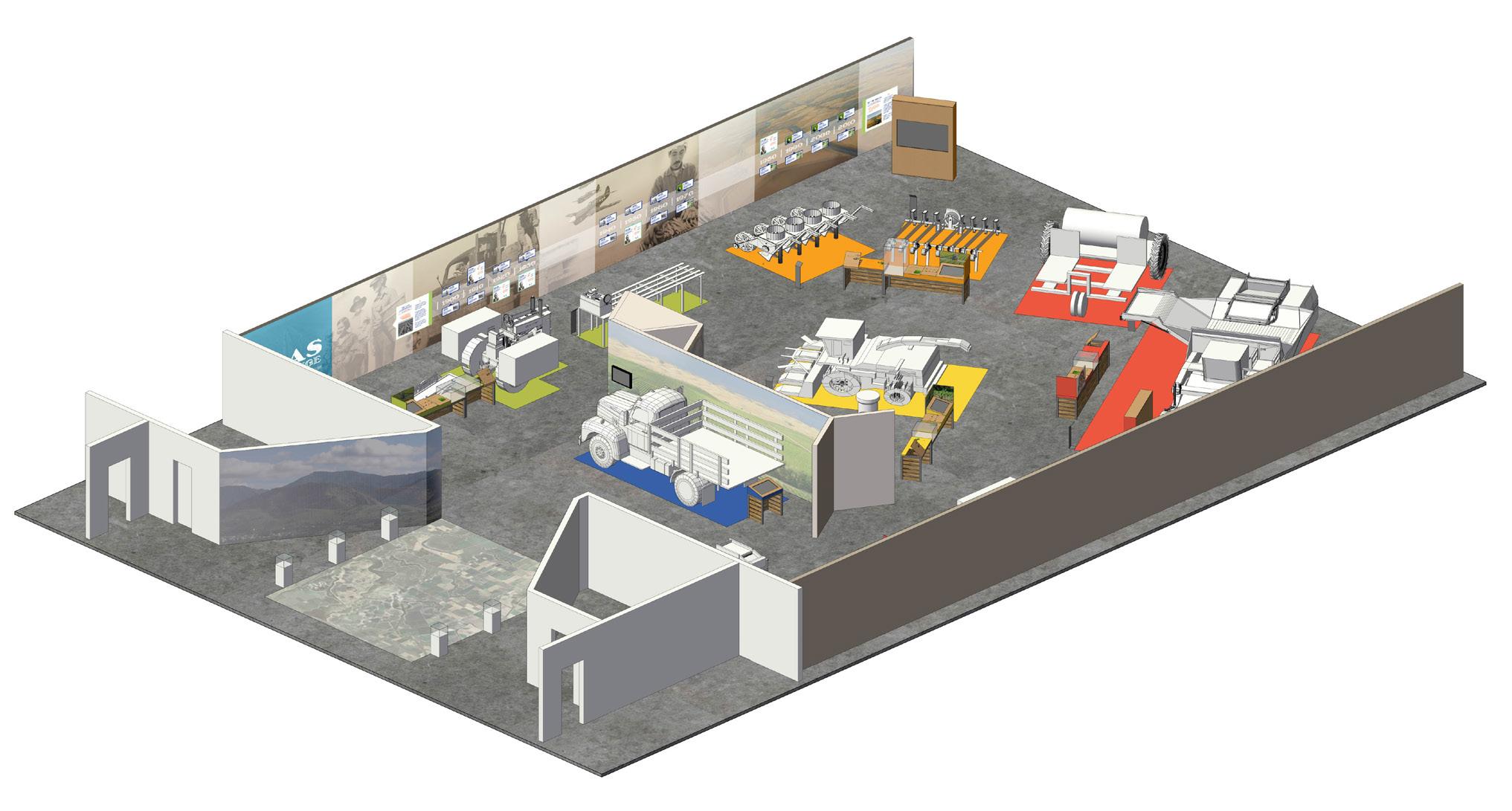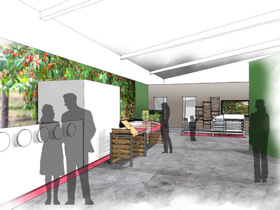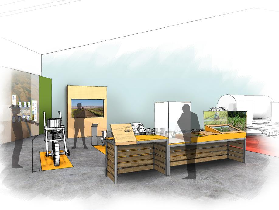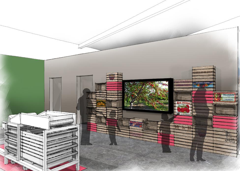 3.1-3.5 EXHIBIT CLUSTERS INTERPRET THE STORY OF THE FIVE CROPS; CHERRIES, ASPARAGUS, TOMATOES, WALNUTS,BEANS AREAS ALLOCATED FOR AV
