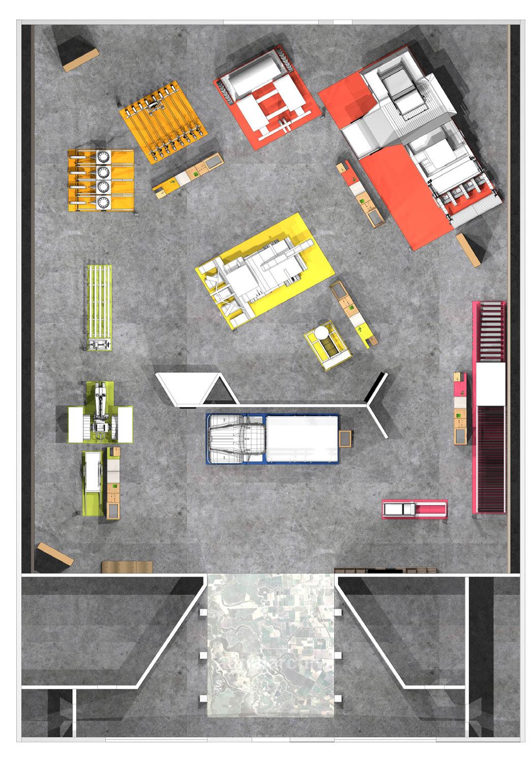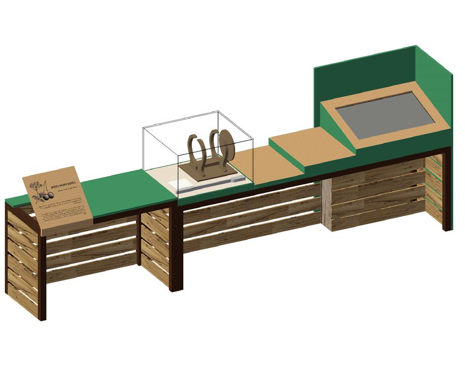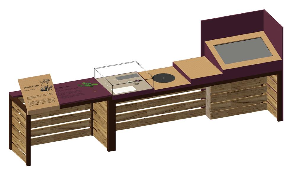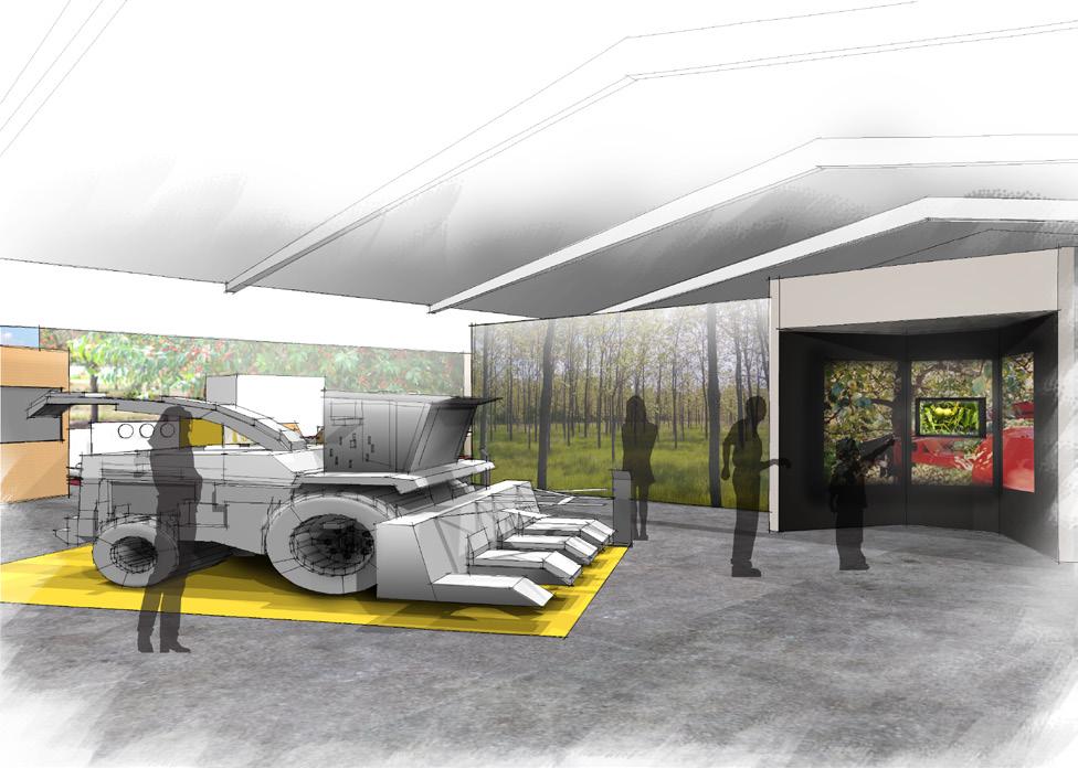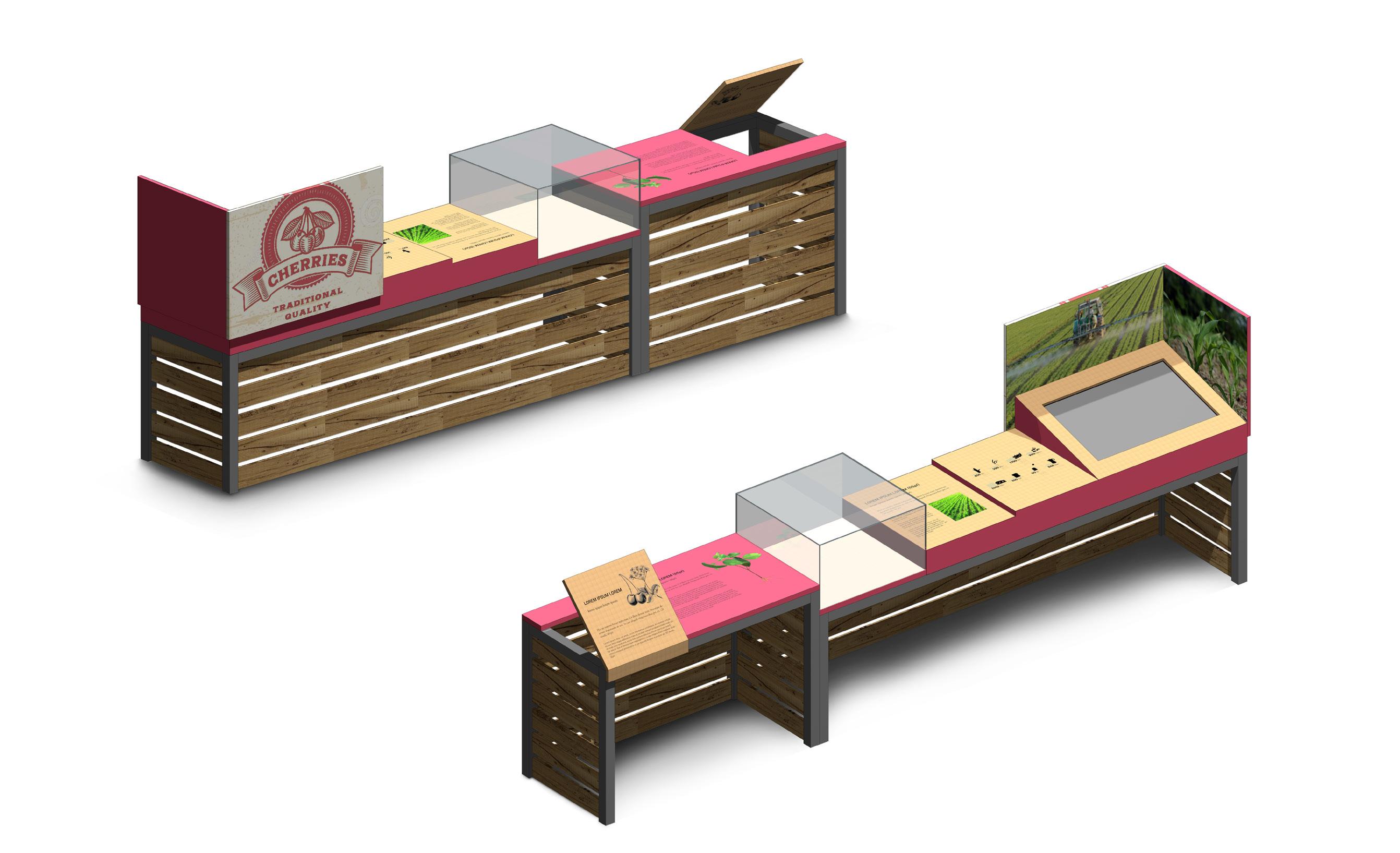 3.1-3.5 EXHIBIT CLUSTERS INTERPRET THE STORY OF THE FIVE CROPS; CHERRIES, ASPARAGUS, TOMATOES, WALNUTS,BEANS AREAS ALLOCATED FOR AV